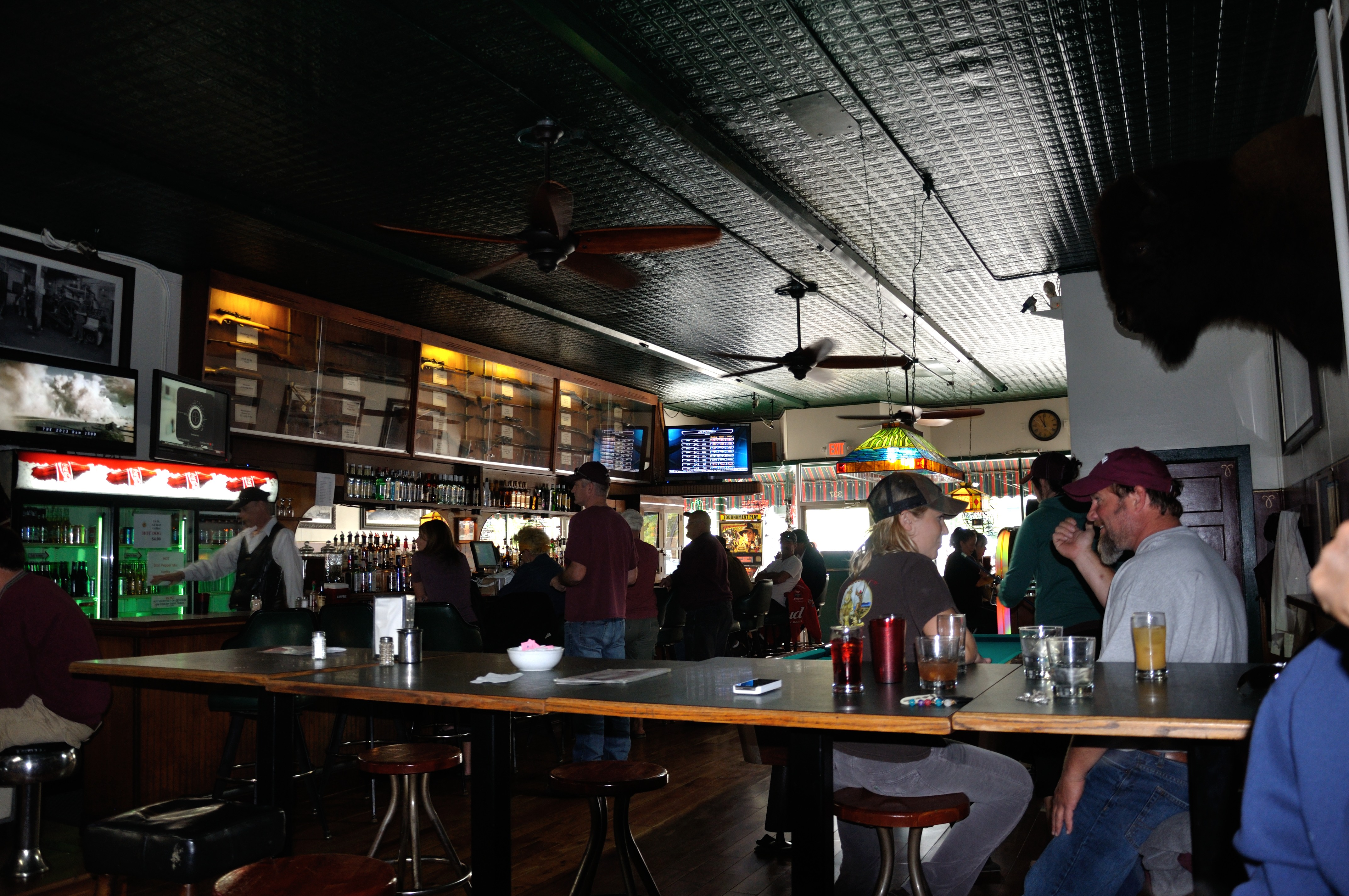 After that we walked up the main drag, listened to street musicians, looked in at the People’s Market and stopped for brunch at the legendary “Oxford” where many of the patrons sitting at the bar were already half in the bag by 11 AM. Mitch ordered their long-time specialty, “Brains and Eggs.” We were told that because of mad cow disease they no longer serve this delicacy. The omelets we got, however, were very good. On to Glacier National Park.
