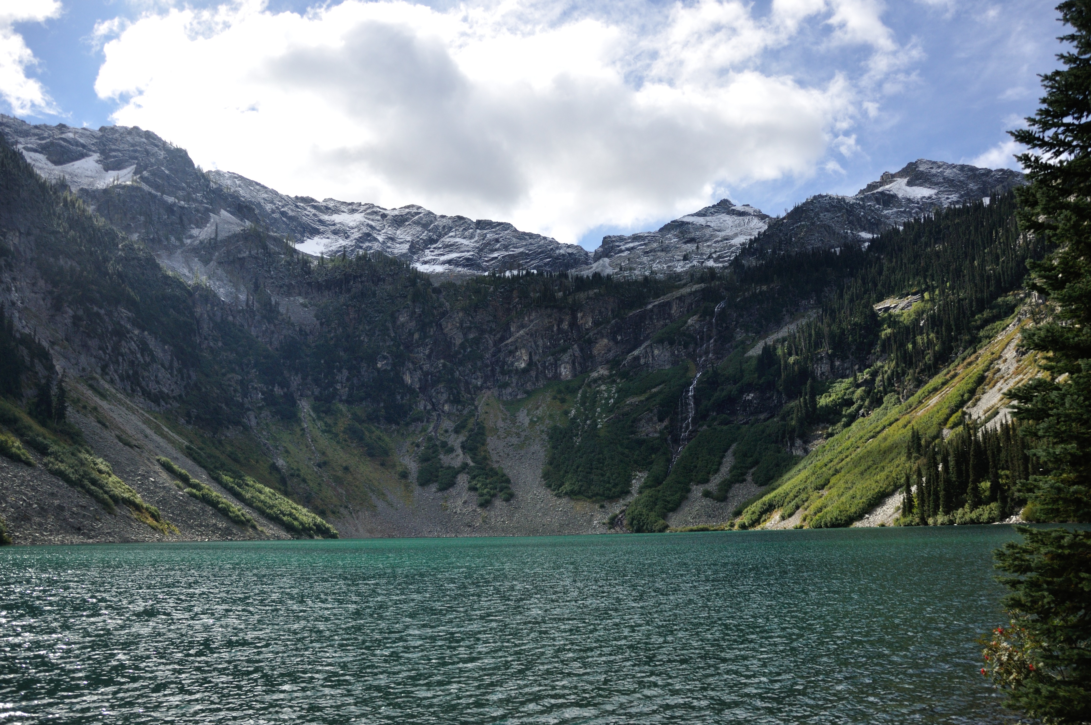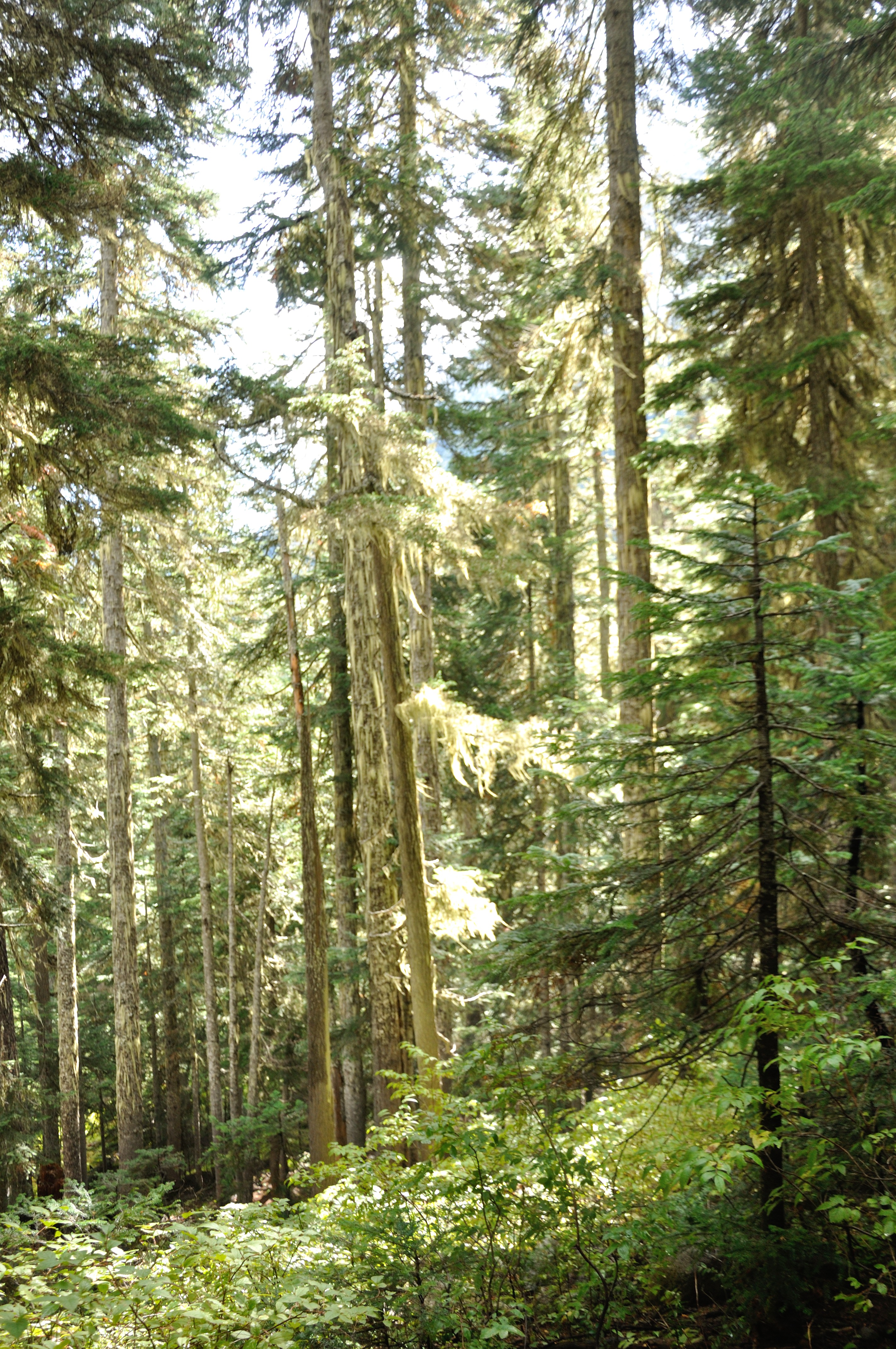 We stayed one night in Winthrop, an early 20th century mining town that tries to keep the flavor of an earlier time. It’s well preserved, artsy, but a bit kitchy. There’s a good bookstore. We took a nice hike along the Methow River on a conservancy-run trail and explored the outskirts of town. We drove up to the Sun Valley Lodge and checked it out. The views there are stunning but reviews are mixed for this popular resort destination. We left in the morning and headed west on Route 20, the major road through the Northern Cascades. The scenery became greener and lush. We stopped on the road to take a hike to Rainy Lake, being careful not to raise the interest of the mountain goats who are in rutting season..but we sure saw a lot of goat poop on the trails.