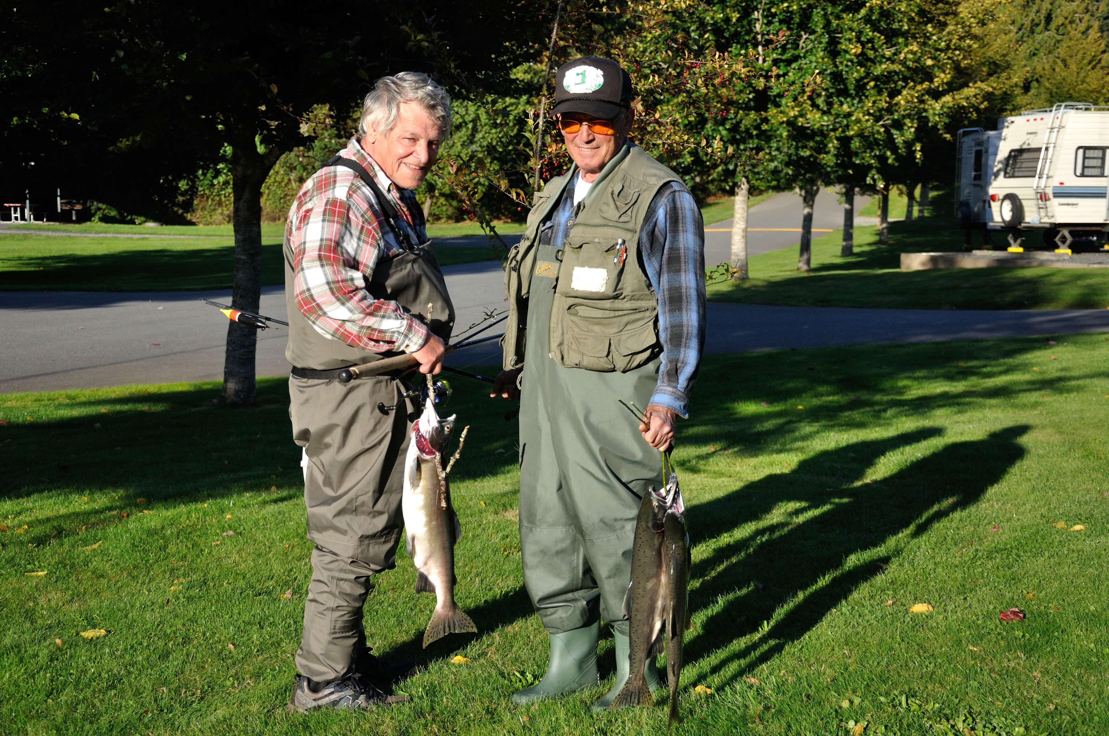 That afternoon we picked up some decent Que Car BBQ. Afterwards we checked into the Howard Miller Steelhead State Park Campgrounds in Rockport on the Skagit River. This is one of the nicest campgrounds we have stayed at to date. Many of the people camping here were fishing on the river and catching large Humpy (Pink) salmon, exhausted from swimming upstream to spawn and die.