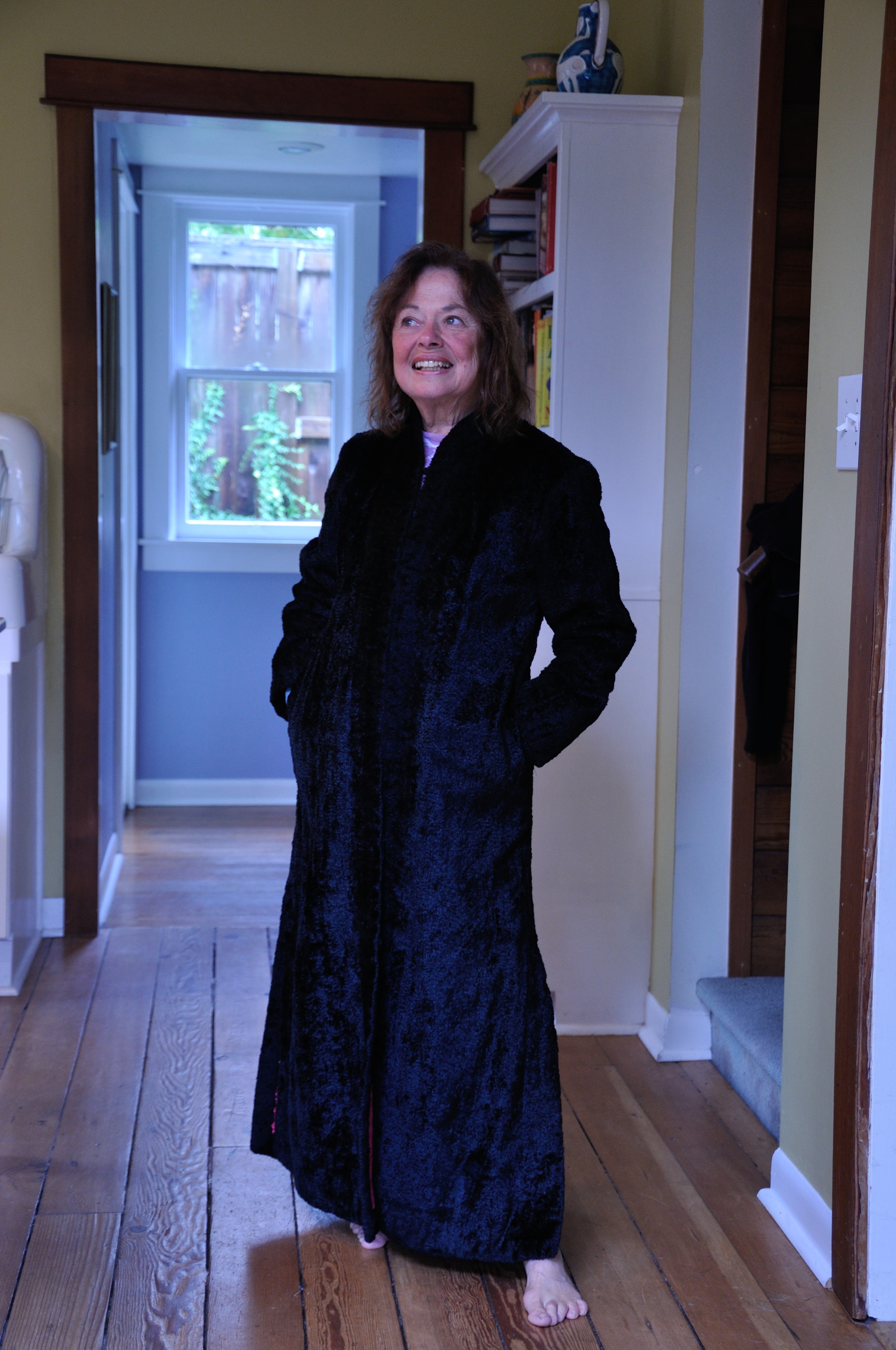 Friday afternoon, Reggie took Joanne on a tour of neighborhood thrift shops where Joanne found an unusual reversible coat.