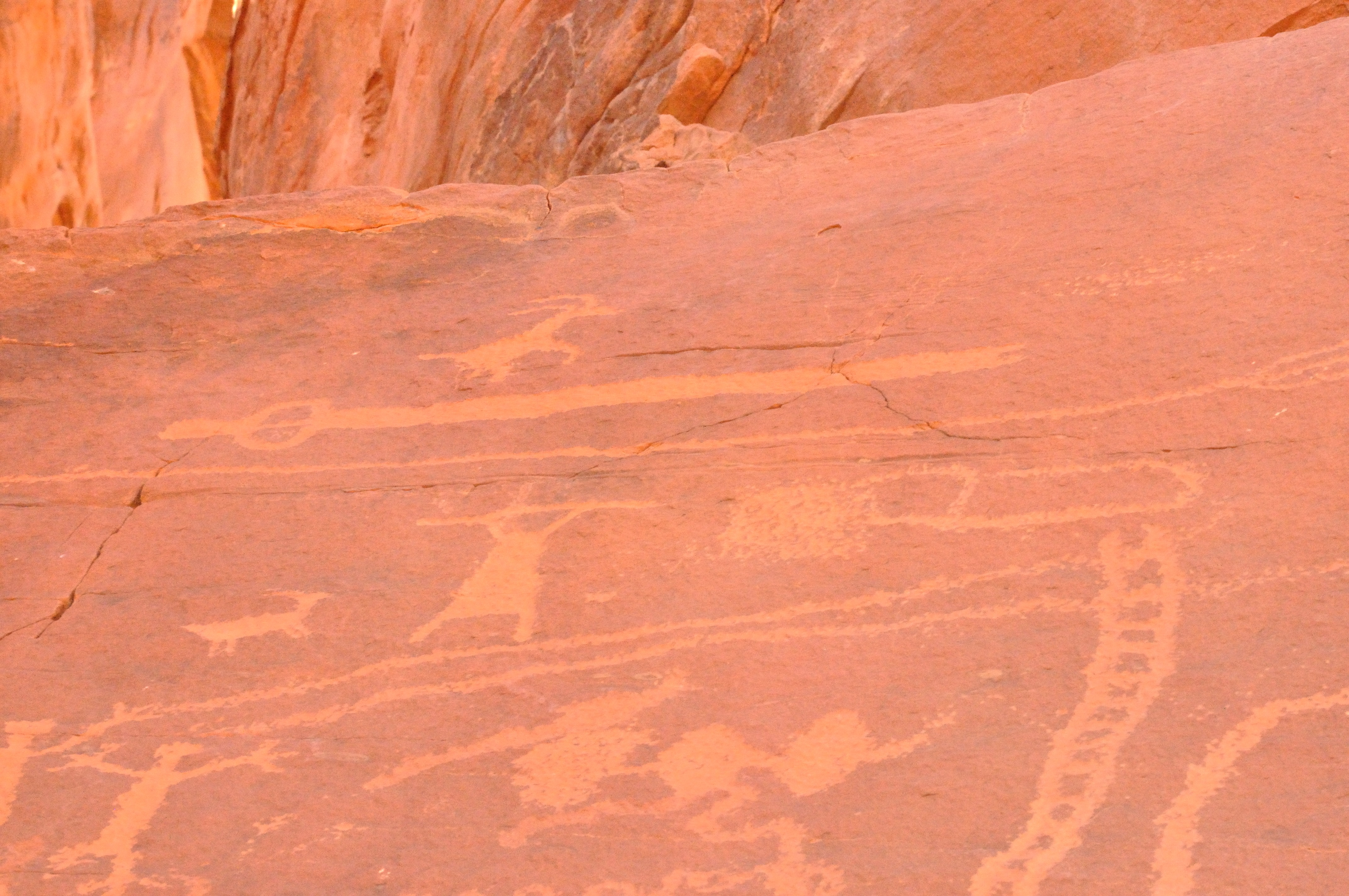 The campgrounds are located in a remote uninhabited desert surrounded by amazing red rock formations. It is so quiet you can actually hear the eerie sound of nothingness. The campsite offered no electricity, and water was obtained from a communal pump. This is what RV’ers call “boondocking.” During the night we woke up a star studded sky and in the early morning to breathtaking scenery surrounding us. After breakfast we hiked to some unusual rock formations and remarkably well preserved 4000 year old petroglyphs.