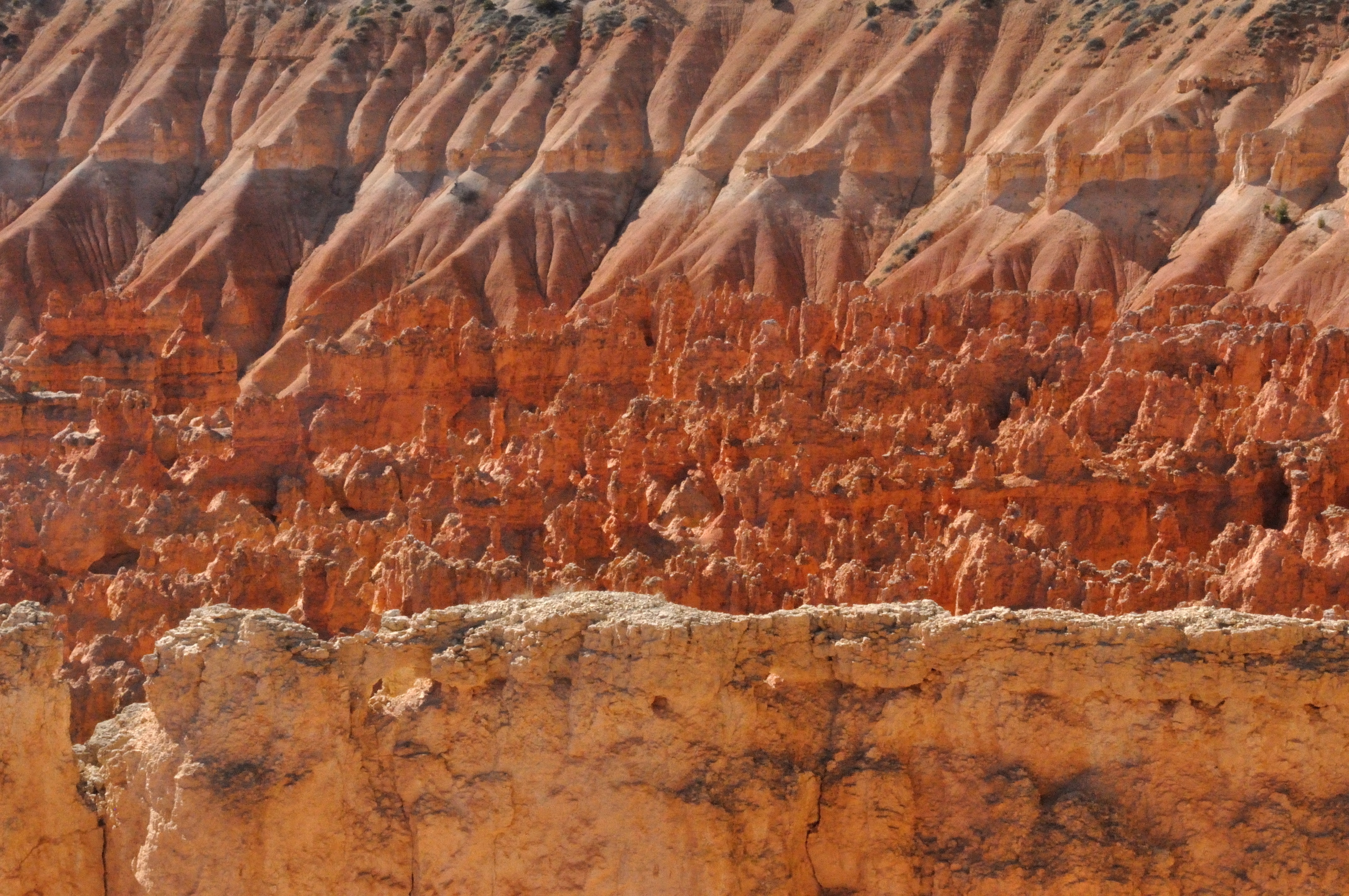 For those interested in geology, we learned that Bryce is not really a “canyon.” There is no great body of water that created the divide. It is the product of the Colorado and Pacific Continental Plates crashing into each other. Rather than attempting to give an inept geological interpretation, let these pictures speak for themselves about what air, water, and dramatic shifts in temperature have produced. The change is ongoing and it is estimated that Bryce Canyon will be obliterated in 3 million years. So, there is still time for a visit.