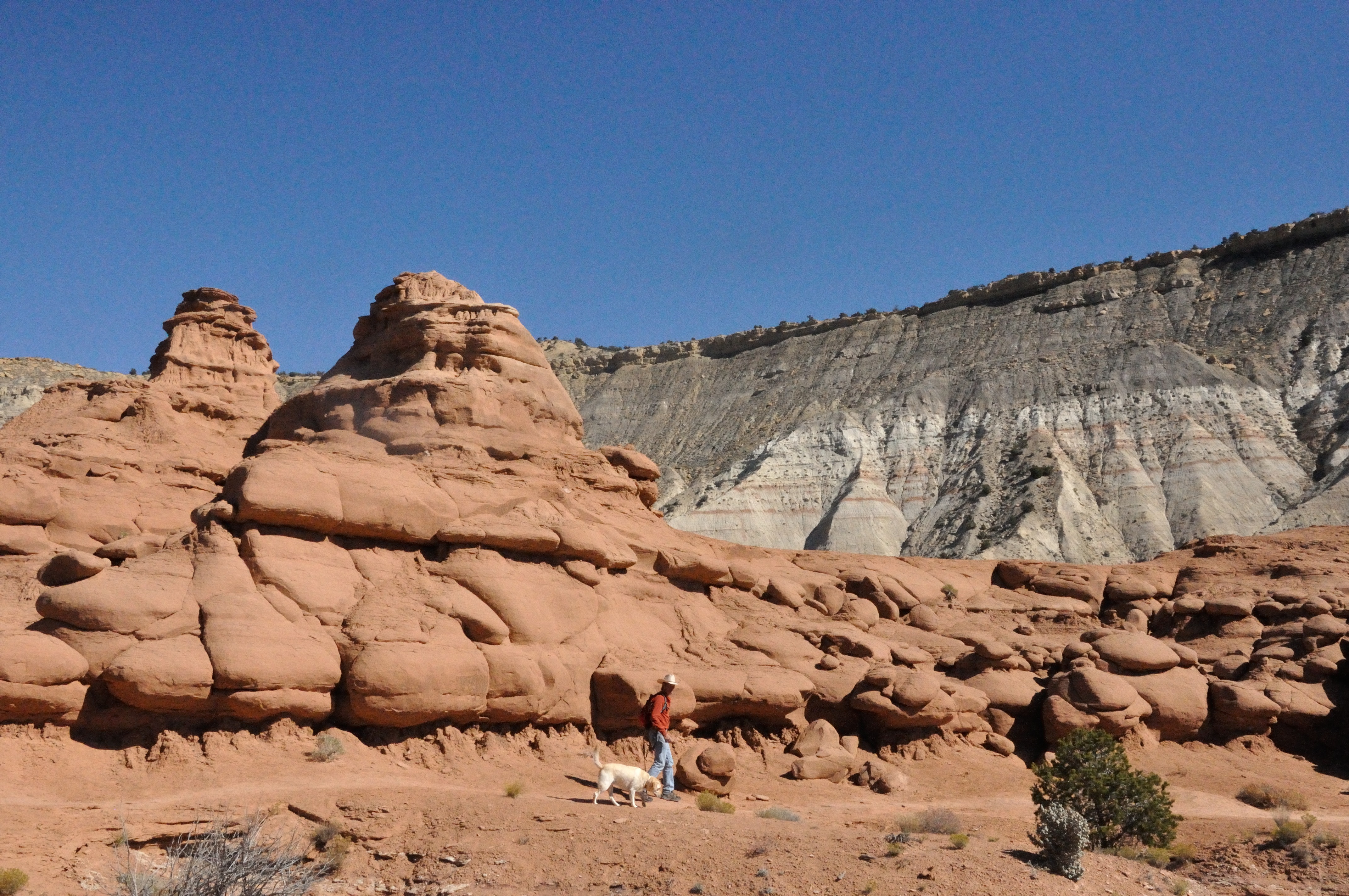 After two days in the Roadtrek, we were anxious to get our feet on to a hiking trail. The National Parks do not allow dogs on their unpaved trails and we were limited to short rim walks with Apollo. We decided to visit Escalante to find a hike we could take Apollo on. We ended up at Kodachrome State Park, a charming spot overlooking the Grand Staircase. It proved to be a great experience albeit a bit busy since Utah was celebrating Outdoor Environmental Education Week and families were out in force. It was a good thing.