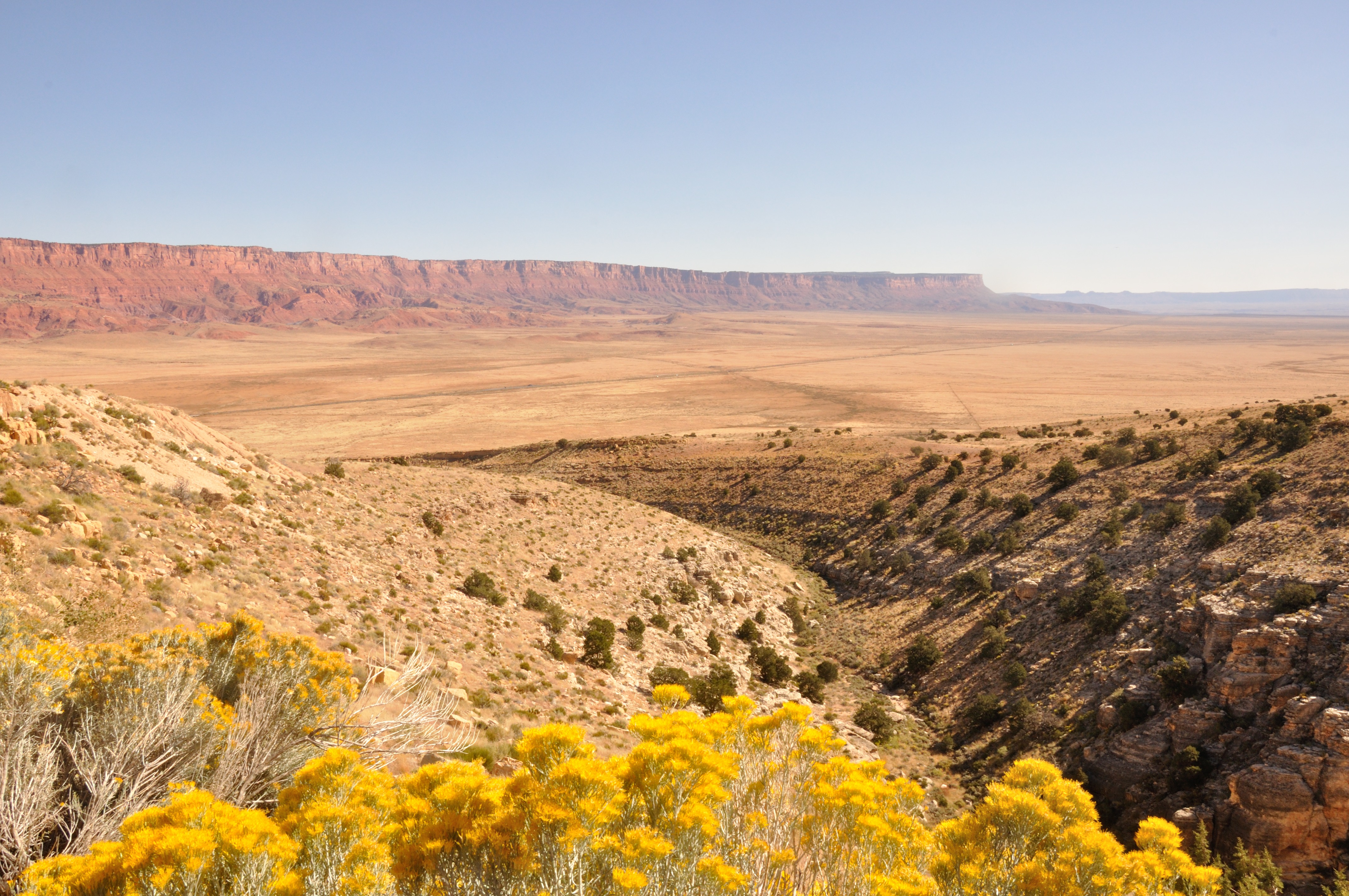 After leaving the North Rim we headed south to the South Rim, about 200 miles by car, a four hour drive or about 22 miles if we hiked it down and up, a two day affair. We drove. On the way we passed through the Vermillion Cliffs as seen below. We stopped at a very cool cafe for brunch.