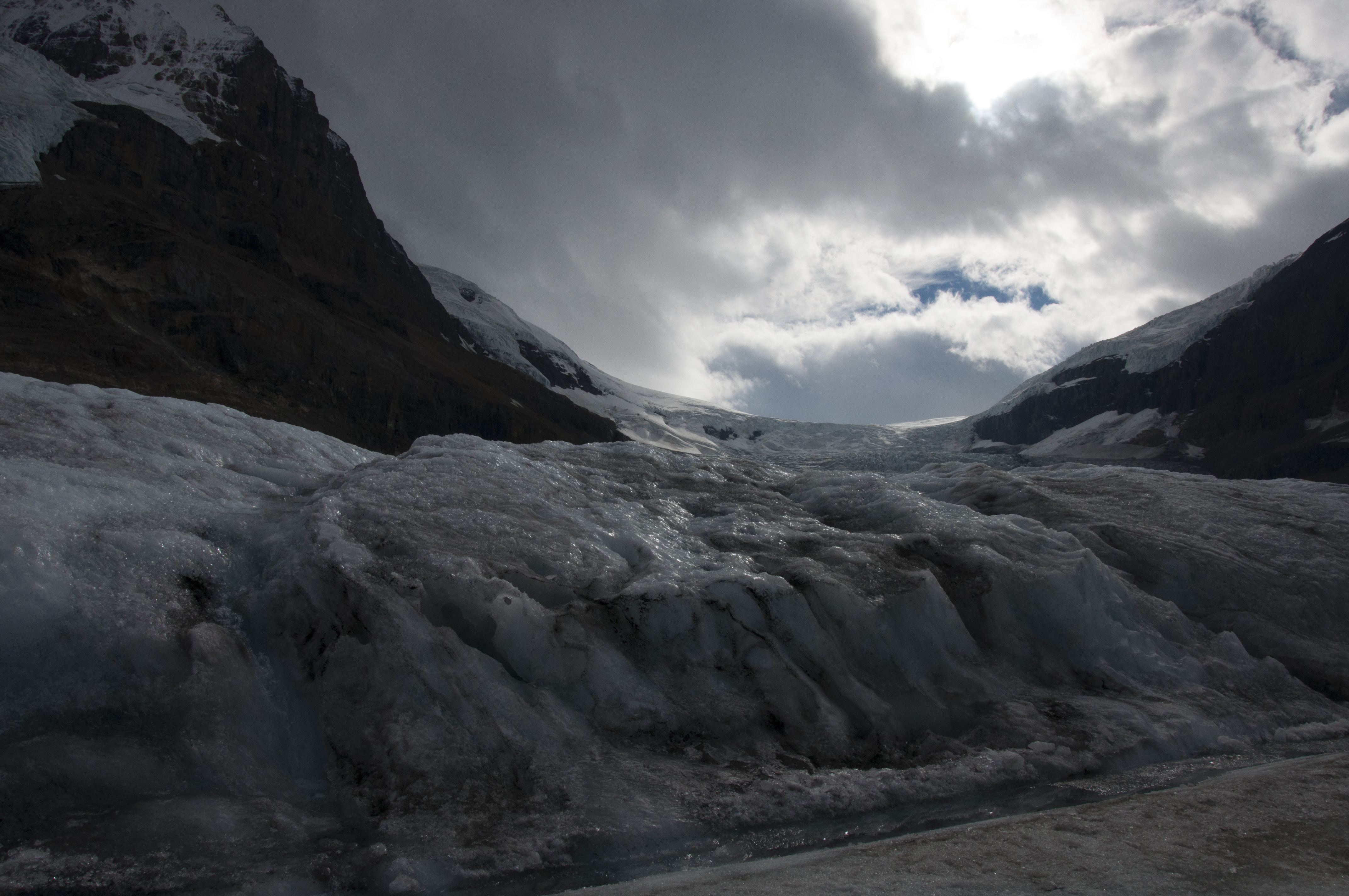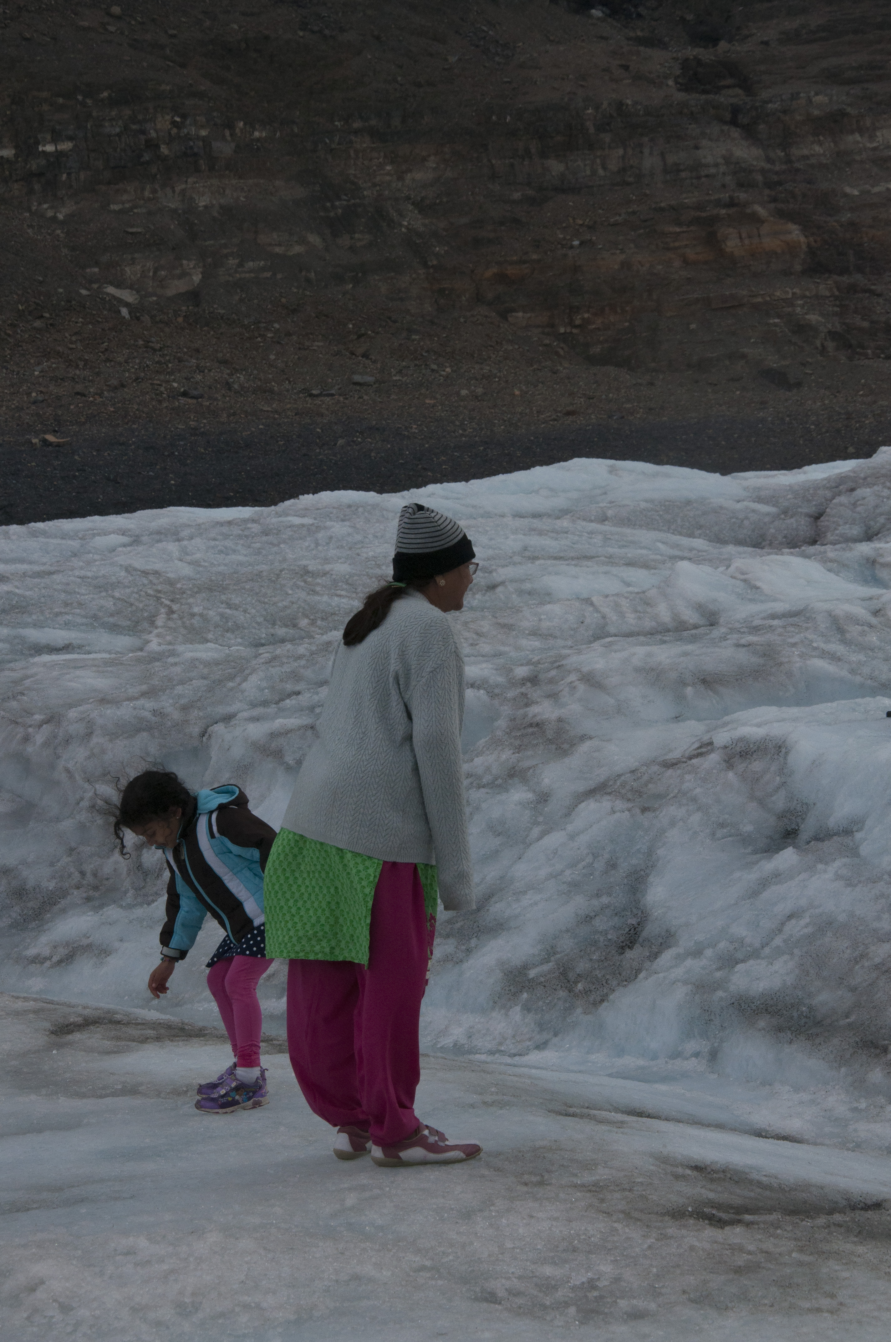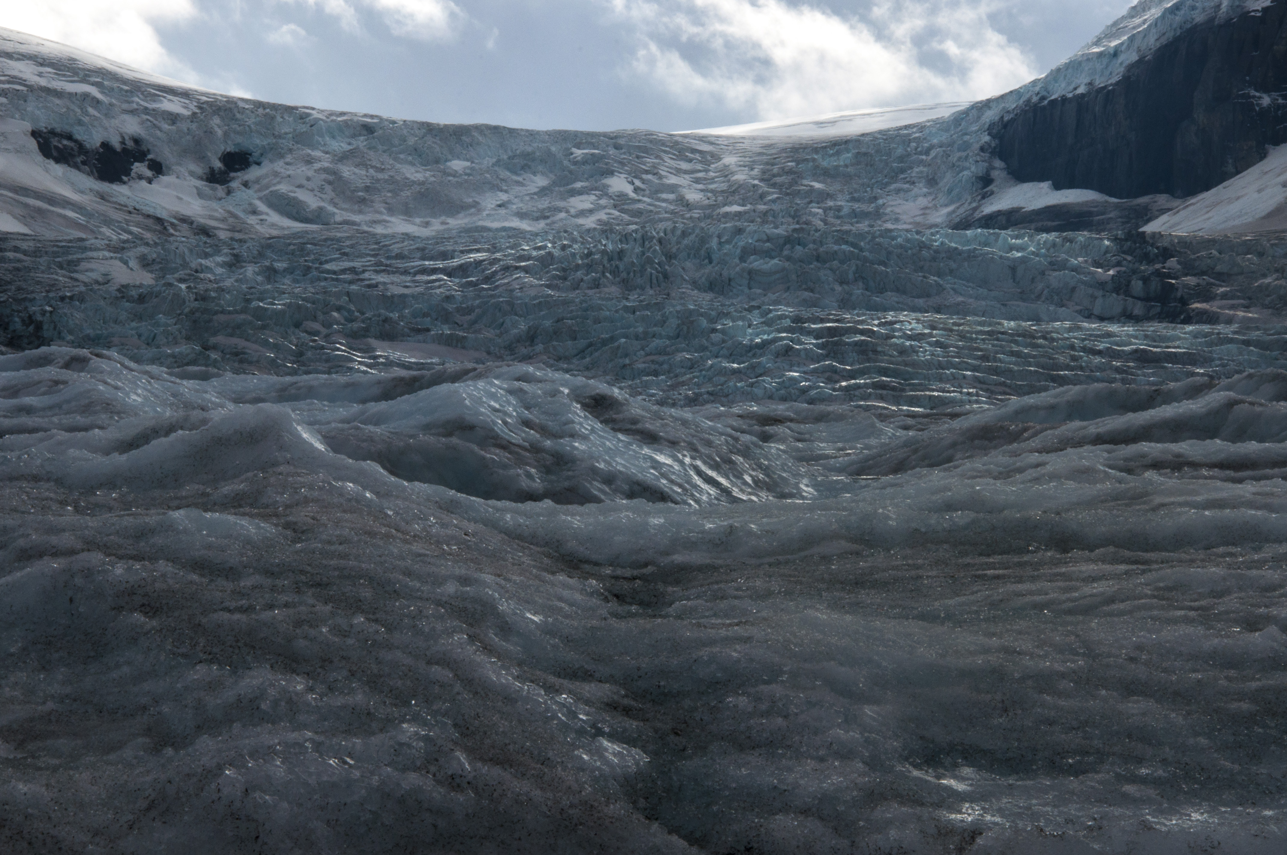 If there is any doubt in your mind as to whether the glaciers are fast disappearing take a look at these pictures. It is estimated that within a couple of hundred years they will be gone and life on earth will be very different. Right now 70% of our fresh drinking water comes from glaciers. Witnessing the beauty and grandeur yet the vulnerability of these huge ice forms is both profound and sad. One elderly Indian gentleman on our bus said he had been to the Columbian Icefield 40 years ago and now he had come to witness the change. He was lame and walked with difficulty on the ice but with great sense of purpose he examined the entire area we had access to.