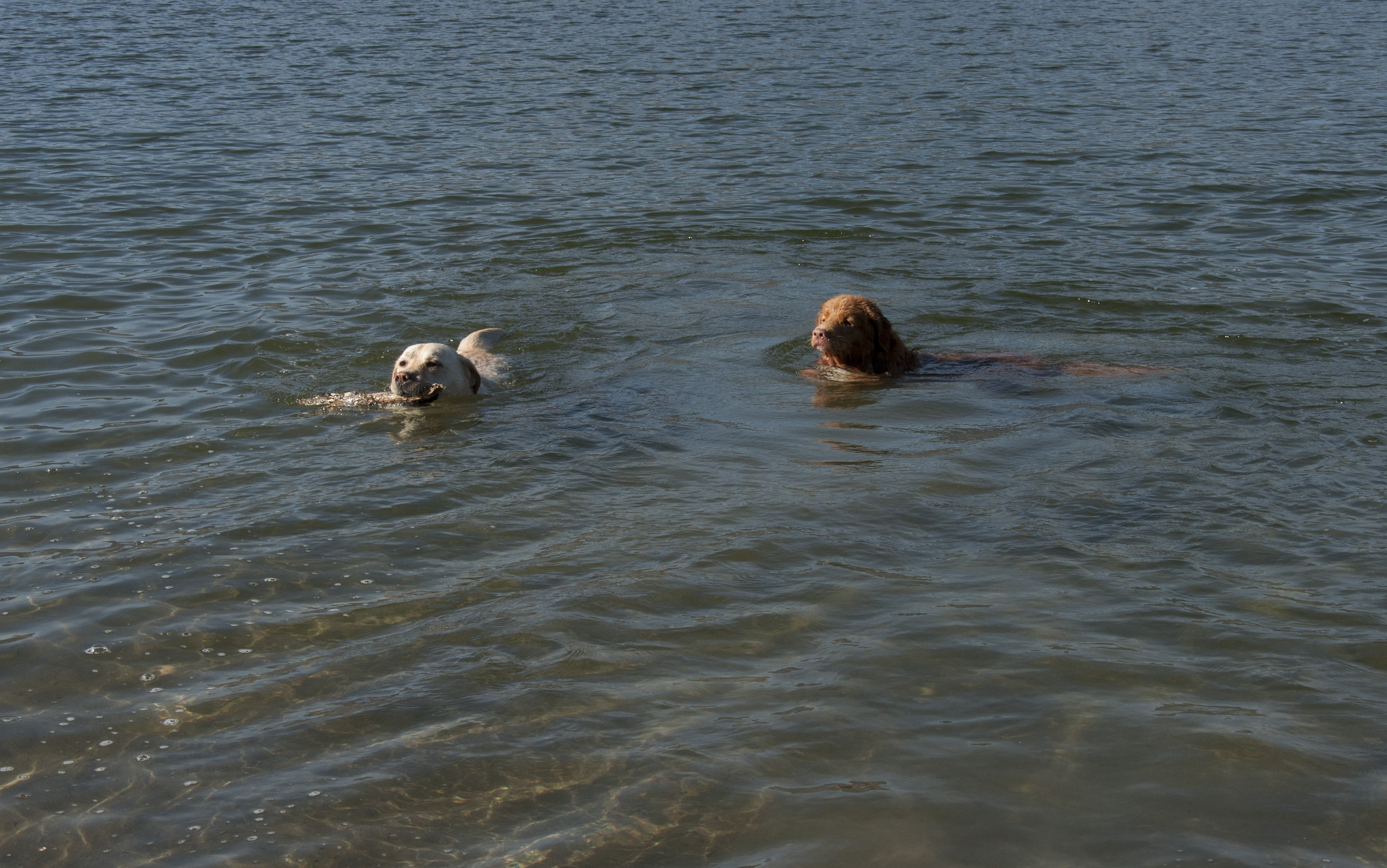 We very much enjoyed our stay. Our RV campsite was right on the lake, and Apollo met a friend to swim with.