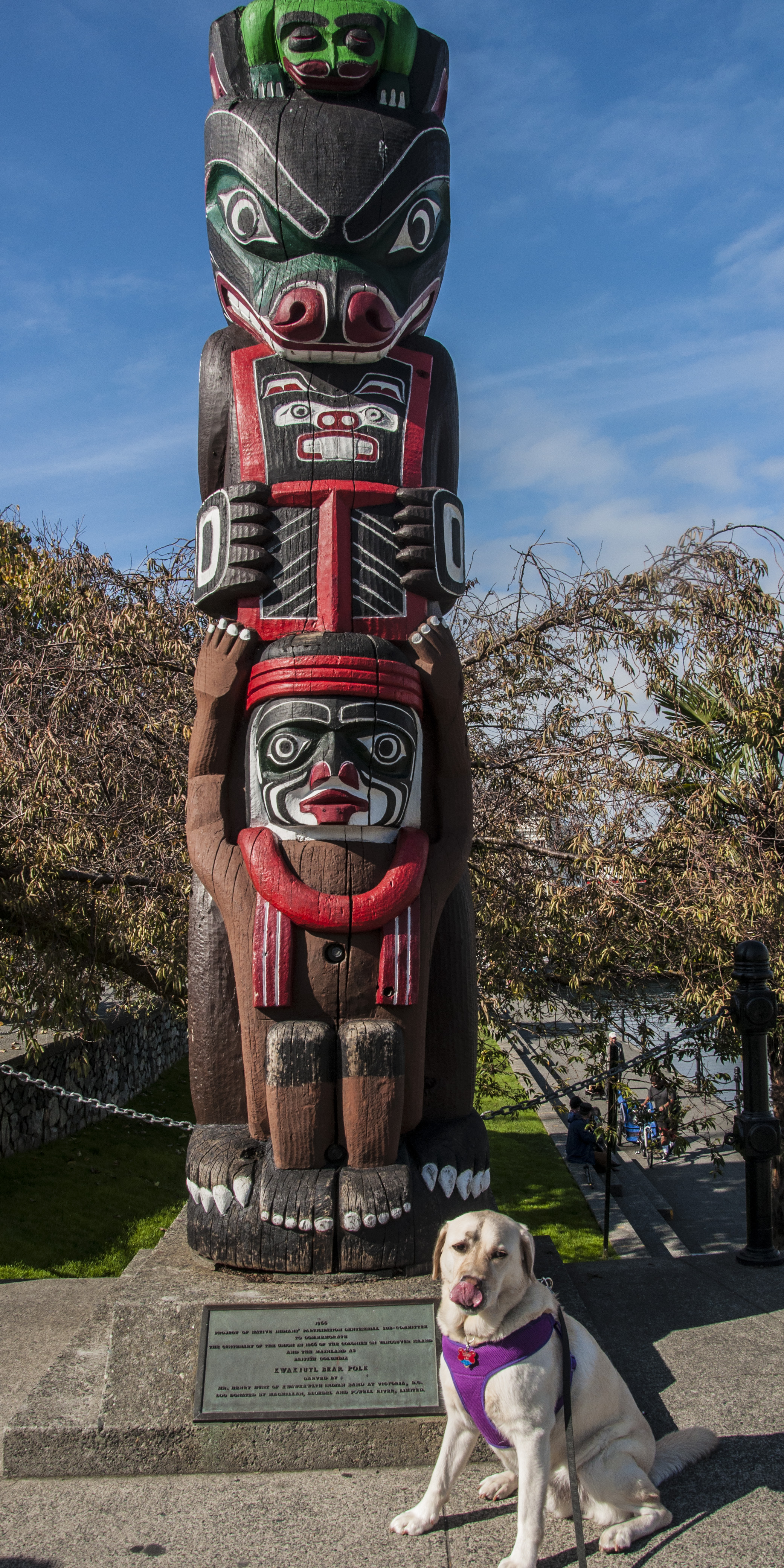 We had visited Victoria about 20 years ago and remember it as being a very pretty city. The harbor is beautiful, the flowers are always in bloom, much of the architecture is an homage to the Victorian Age, and the climate is moderate. We very much were looking forward to this visit. But we hit a series of missteps when we entered the city. First off, the long drive through the Cascades took us even longer than we expected and were forced to take a late ferry. By the time we hit land it was already dark and Joanne started sneezing and sniffling, coming down with a cold. Second, the campground that we had selected from the Internet, the Fort Victoria RV Park, turned out to be our worst nightmare. Several hundred large rigs were jammed together, cheek to jowl, on small parcels with hardly a tree in sight. The one available space was littered with debris from the RV next to it. We turned tail and seeing an Indian restaurant nearby, stopped for dinner. Mitch had it in his head to dry camp in the restaurant parking lot. The waiter looked at him like he was crazy and recommended the EconoLodge down the street. Other than Mitch tripping over the bedspread on the floor and breaking his pinky (on his already gimpy right arm- Depuytren’s Contracture in the hand, carpal tunnel syndrome in the wrist and forearm, and tennis elbow), it turned out to be quite comfortable, clean, and had a great shower. And Apollo had his own couch to sleep on.