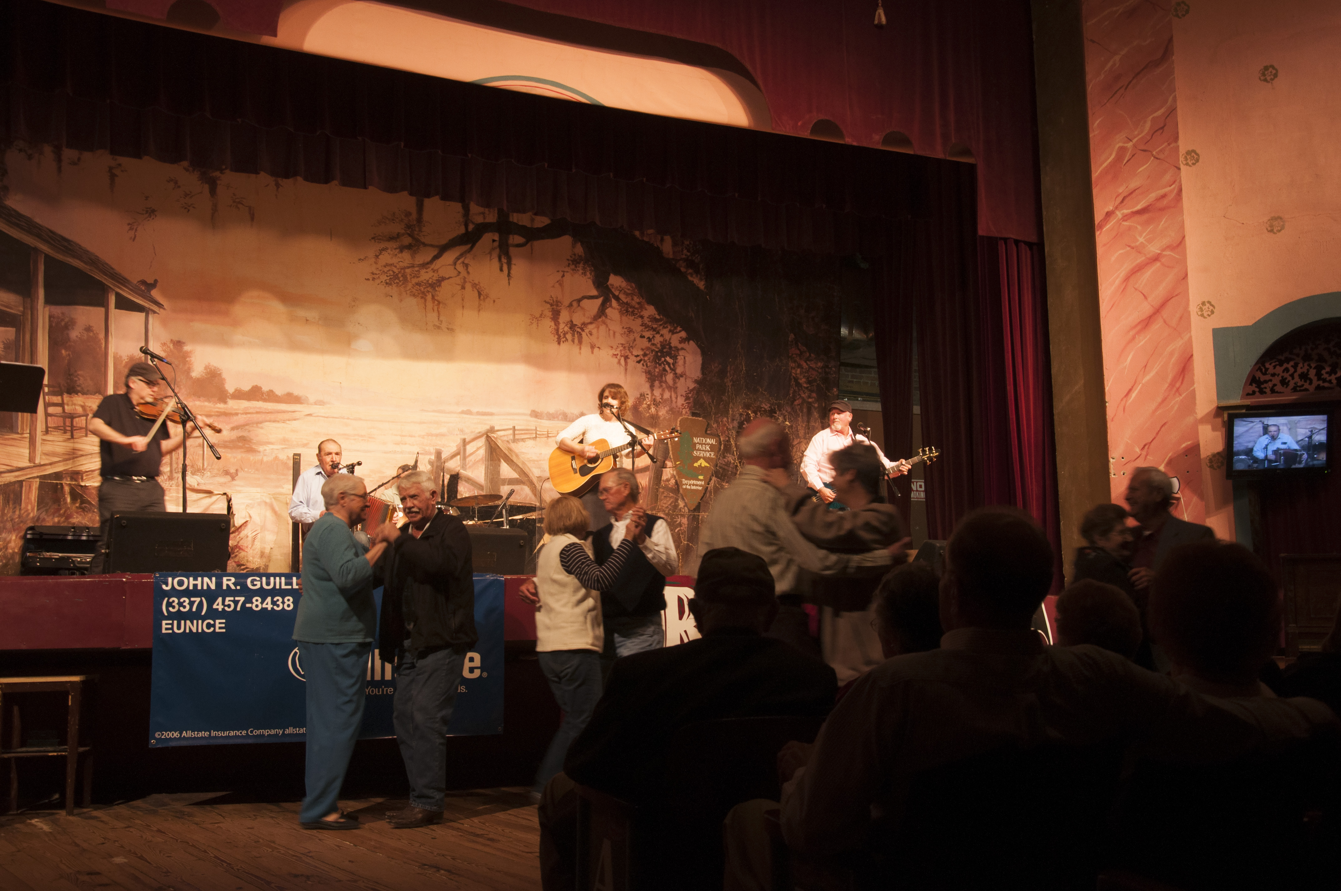 We then rode downtown which boasts a Cajun Museum, the Liberty Theater (run by the National Park Service), the Acadian Cultural Center (also run by the NPS), a railroad depot museum, and a small town square where a street fair was in progress. There was a concert at the Acadian Cultural Center featuring 14 year-old Bubba Hebert and the New Morse Playboys. The terrific Buddy Hebert is destined to be a Cajun star of the future. As usual, people took their spins and turns on the dance floor in front of the musicians. Some were clearly regulars of a certain age, and had their dance routines down pat. After the concert, Chef Jordy Carrier served his Corn Mague Choux (gourmetbyjordy.wordpress.com). He lives by the motto: Du bon manger, c’est la joie de vivre. So do we. After that concert, we went to another at the Liberty Theater featuring Harry and Lisa Trahan and their band. More great music and dancing. You can catch these concerts on the local radio stations, KRVS 88.7FM or KEUN 1490 AM. If you are living out of the area, you can listen to them live almost every Saturday, 6:00-7:30 PM at www.krvs.org.
