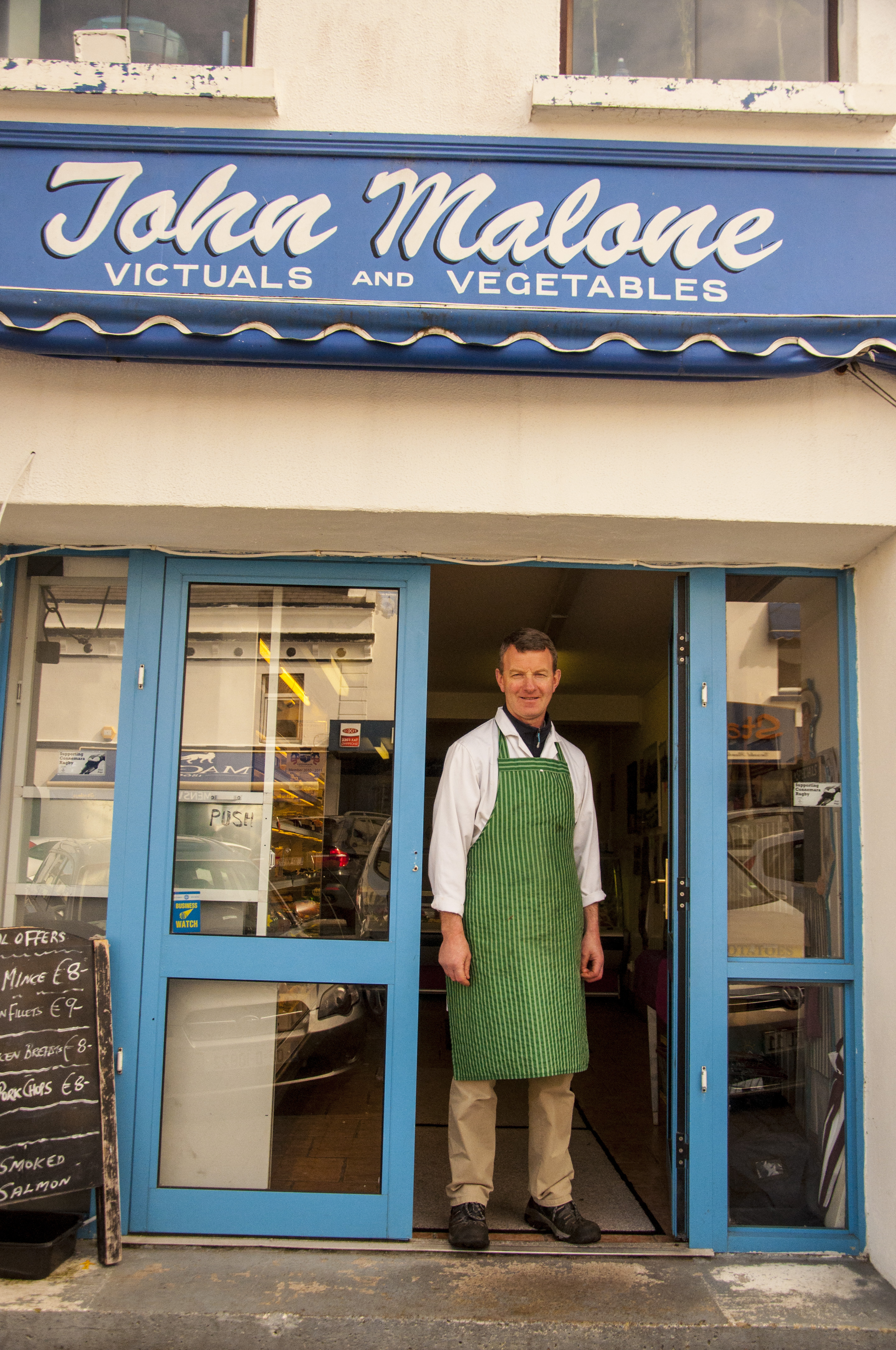 We headed west to Clifden, the capital of Connemara, where we stayed at the Buttermilk Farm B&B, a well ordered, comfortable establishment that was a five minute walk both from the downtown and the famous Sky Road. When we got up in the morning we were pleased to see the sun shining. First thing, we paid a visit to the local “tyre” place and ordered a replacement for the blown out one. We then took a nice, albeit muddy but beautiful hike that went parallel to the famous 7 mile Sky Road and then afterwards relaxed in the downtown. We scoped out the pubs and restaurants, and visited the local butcher to find out what exactly went into making black and white pudding, which we had seen on all the breakfast menus along with baked beans. In the evening we enjoyed some Irish music. The next morning we packed a day bag and caught an early morning ferry in Cleggan for Inishboffin Island.