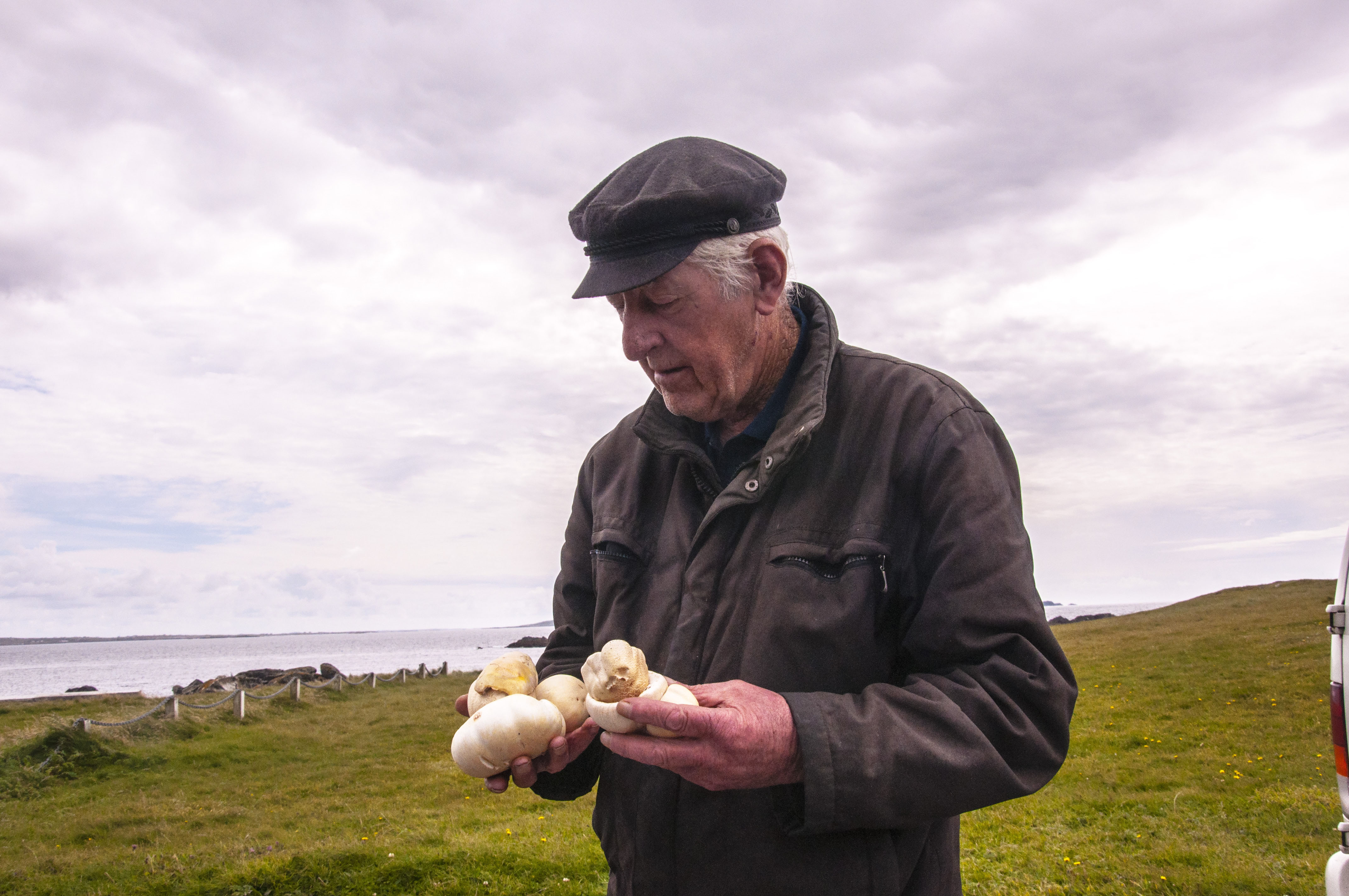 We met a man who had just picked white mushrooms off the hillside where they grow. He told us that they appear very suddenly.