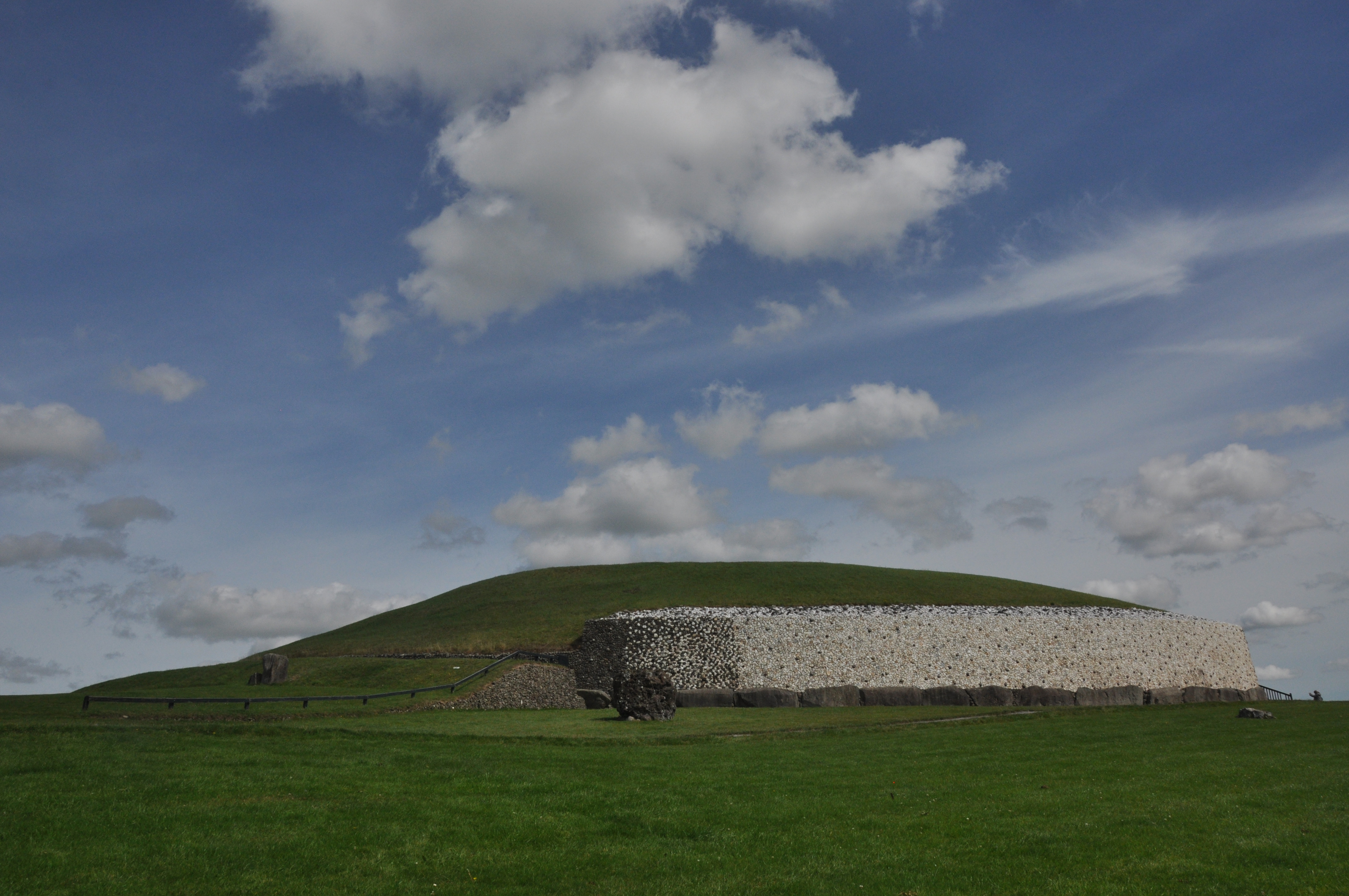 We got up early Saturday morning and drove to County Meath (about an hour’s drive) to get on line well before 9 AM, which is when the doors to Bru na Boinne’s visitor’s center open. Early bird gets the worm here. Several people were already on line. We were given stickers with a time and told to report back. Every 15 minutes a busload of visitors is taken to the sites where they are met by a guide. It is incredibly well organized and the guides are extremely knowledgable. Large groups of 15 or more must make reservations in advance but smaller groups cannot and must que up on arrival. If you arrive late in the afternoon you will probably be turned away (as we were the day before). There is no direct access to the monuments. The effort is well worth it; the experience is both awe inspiring and humbling. A World Heritage Site, people come from all over the world to visit Bru na Boinne. It is the largest and one of the most important complexes of Megalithic sites in Europe dating to the Neolithic period. At 3500BC to 3200 BC it is older than both Stonehenge and the Egyptian pyramids. Bru na Boinne has three separate sites: Knowth, Newgrange, and Dowth. They are comprised of chamber tombs, standing stones, henges, and other enclosures, built with incredible sophistication and knowledge about engineering, science and astronomy. The complex is situated around a wide bend in the River Boyne, which in and of itself is famous as the site of the Battle of the Boyne, a heated topic in Irish history for that battle in 1690 established Protestant domination in Ireland.