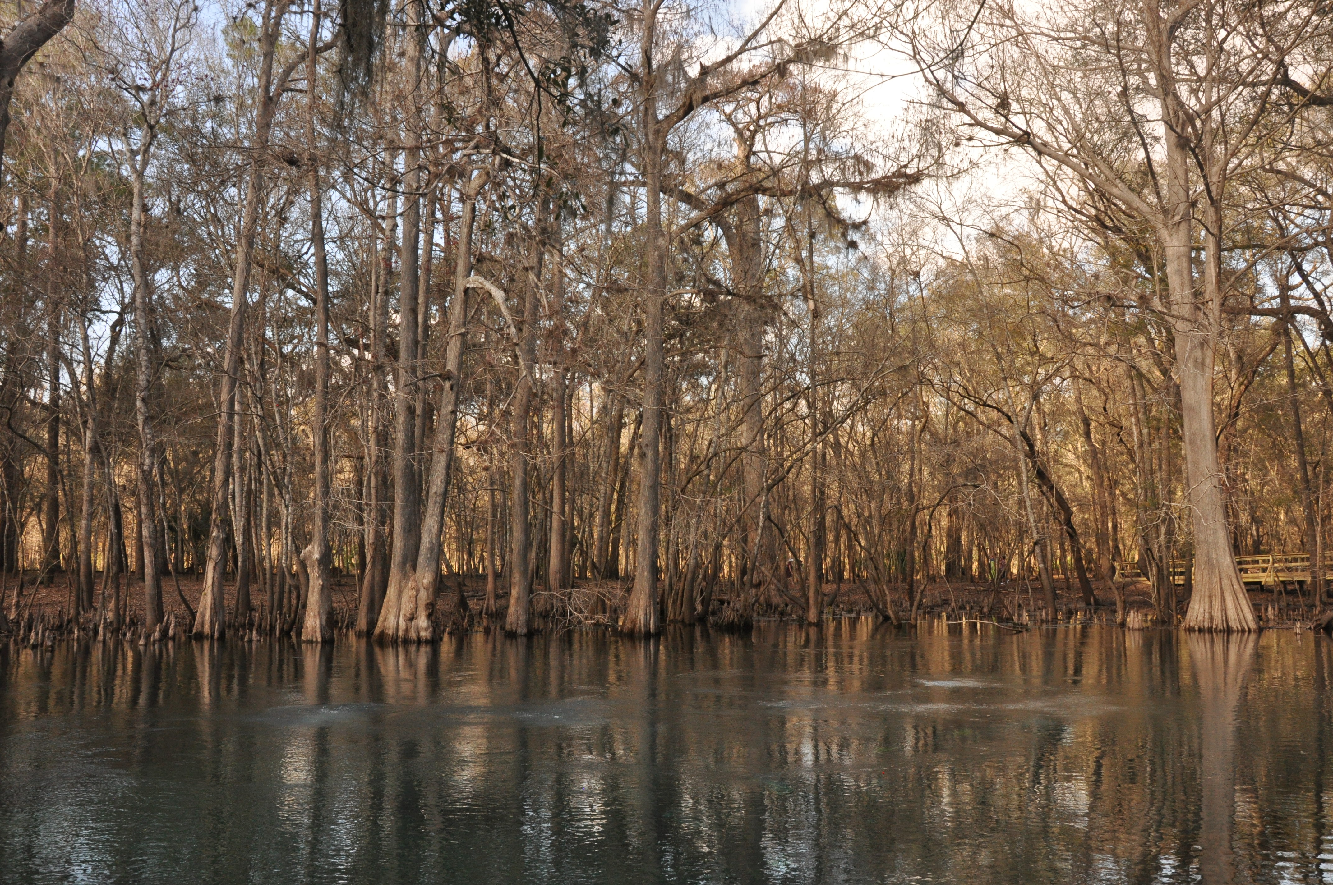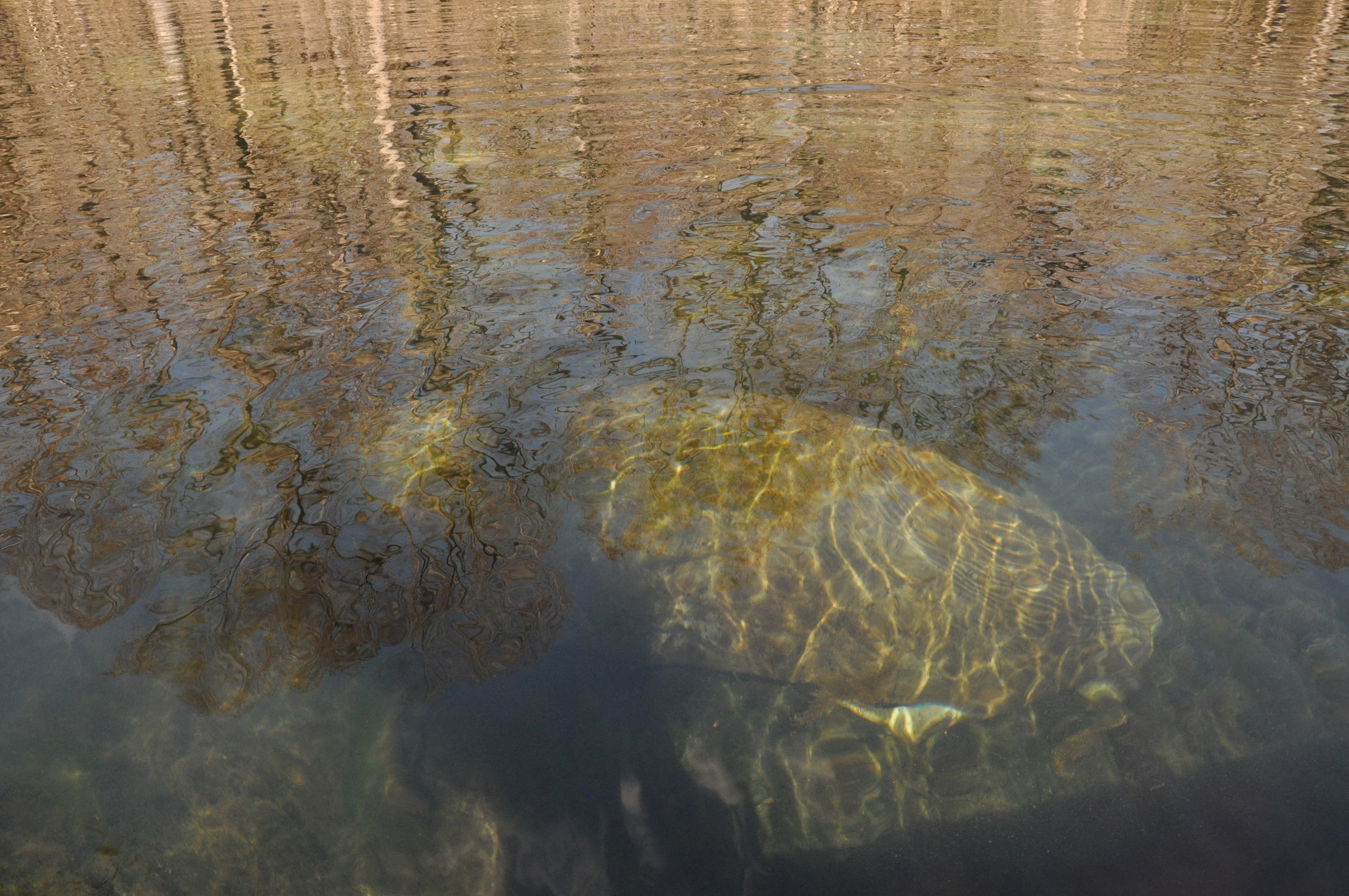Manatee Spring is a delicious pond sized very deep water body surrounded by cedar trees that attracts scores of Manatee at a time that swim around close to humans. Swimming in Manatee Spring is a delightful experience. The water is blue green and as fresh as can be imagined.