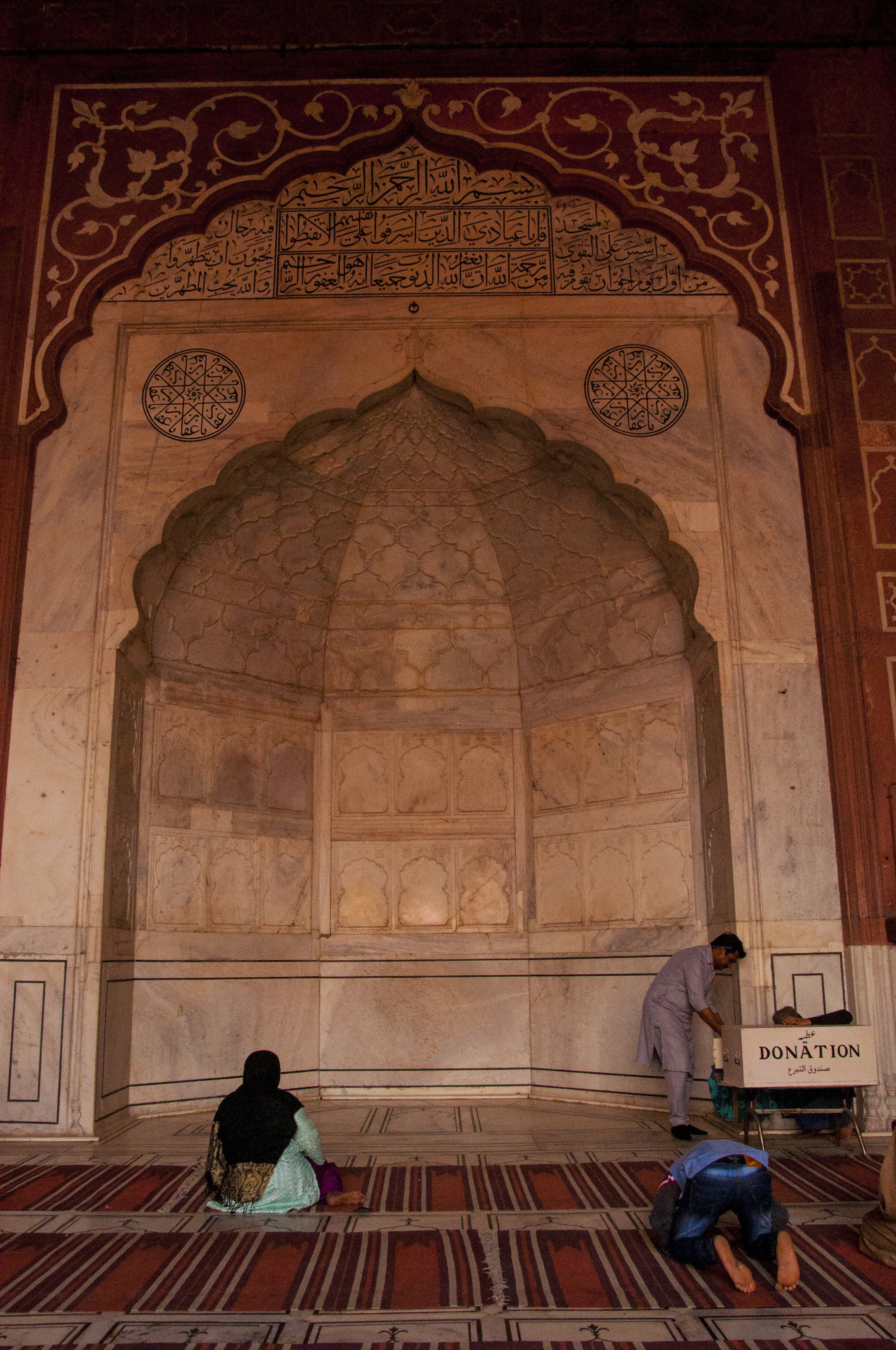 The courtyard at the Jama Masjid Mosque (Delhi), which is one of the largest in India, where congregants gather with family and friends. It was built in 1650 by the Mughal Emperor Shah Jahan, who also built the Taj Mahal in Agra (1630-51).