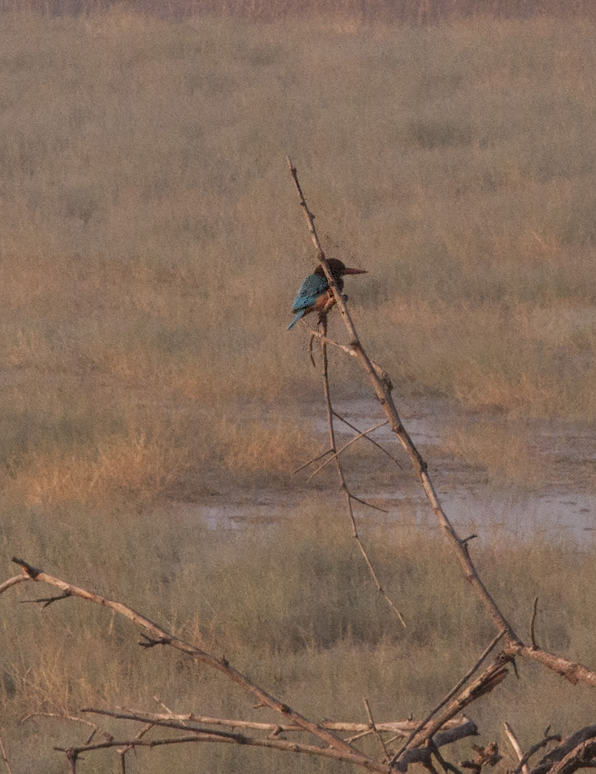 Day two centered on our attempt to find the elusive Bengal Tigers in the Reserve. This is no easy task. Today, due to habitat loss caused by deforestation, and hunting by human poachers, the Bengal tiger is considered to be an endangered species. Despite being the most common of all the tiger species, there are thought to be only around 2,000 Bengal tigers left in the wild. Where we were, within the first 50 kilometers there are three female tigers who each claim about 15 kilometers of territory and one male who patrols the entire territory, so one can drive through the bush for hours and not see any sign of one. The tigress in our immediate area had two cubs so we had hoped she would be out schooling them. It had been a few days since they were spotted and our day was much the same. This was as far as we got: