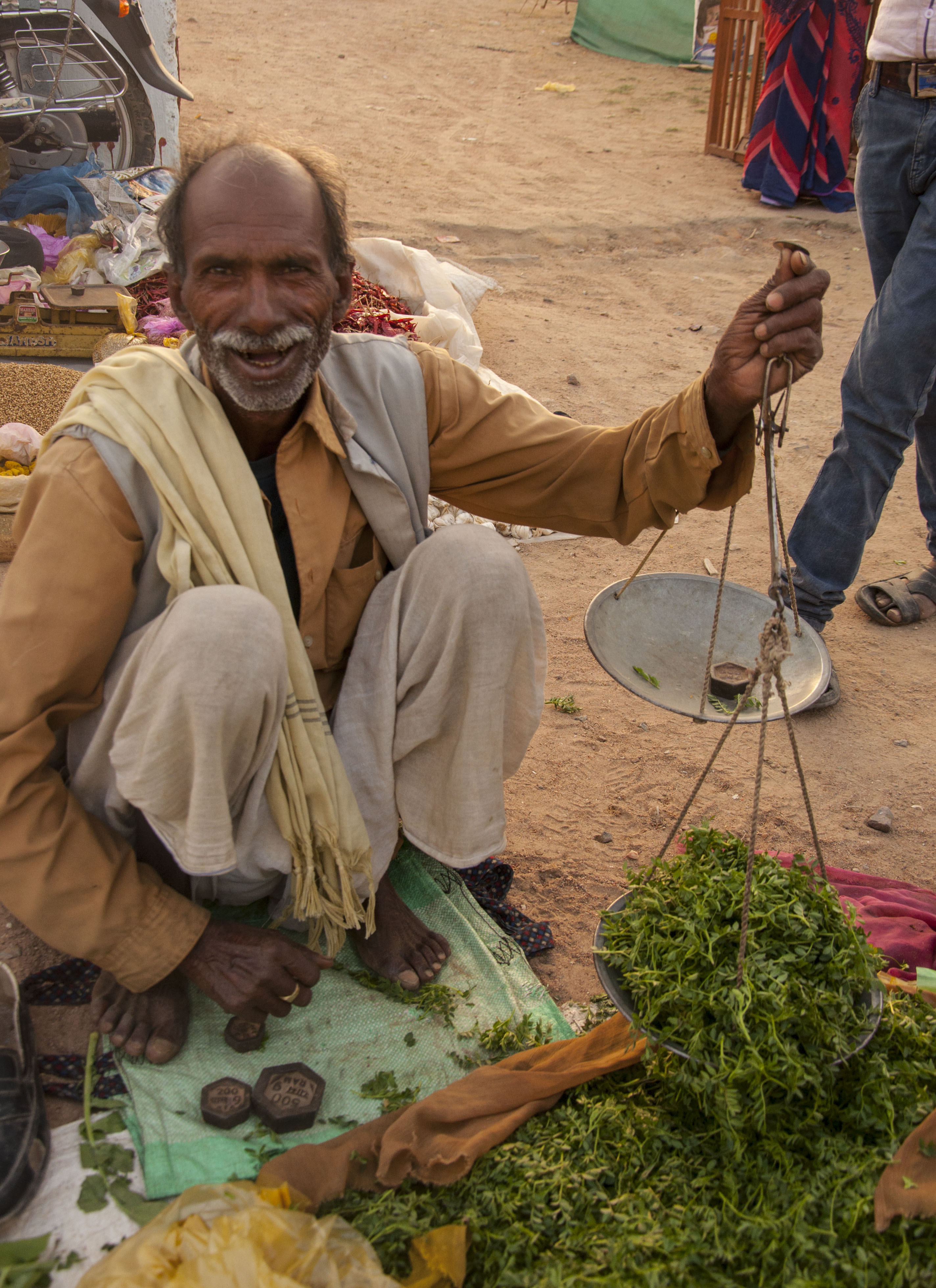 Selling vegetable is a way to get by. Fenugreek shown here is popular in Indian cooking.