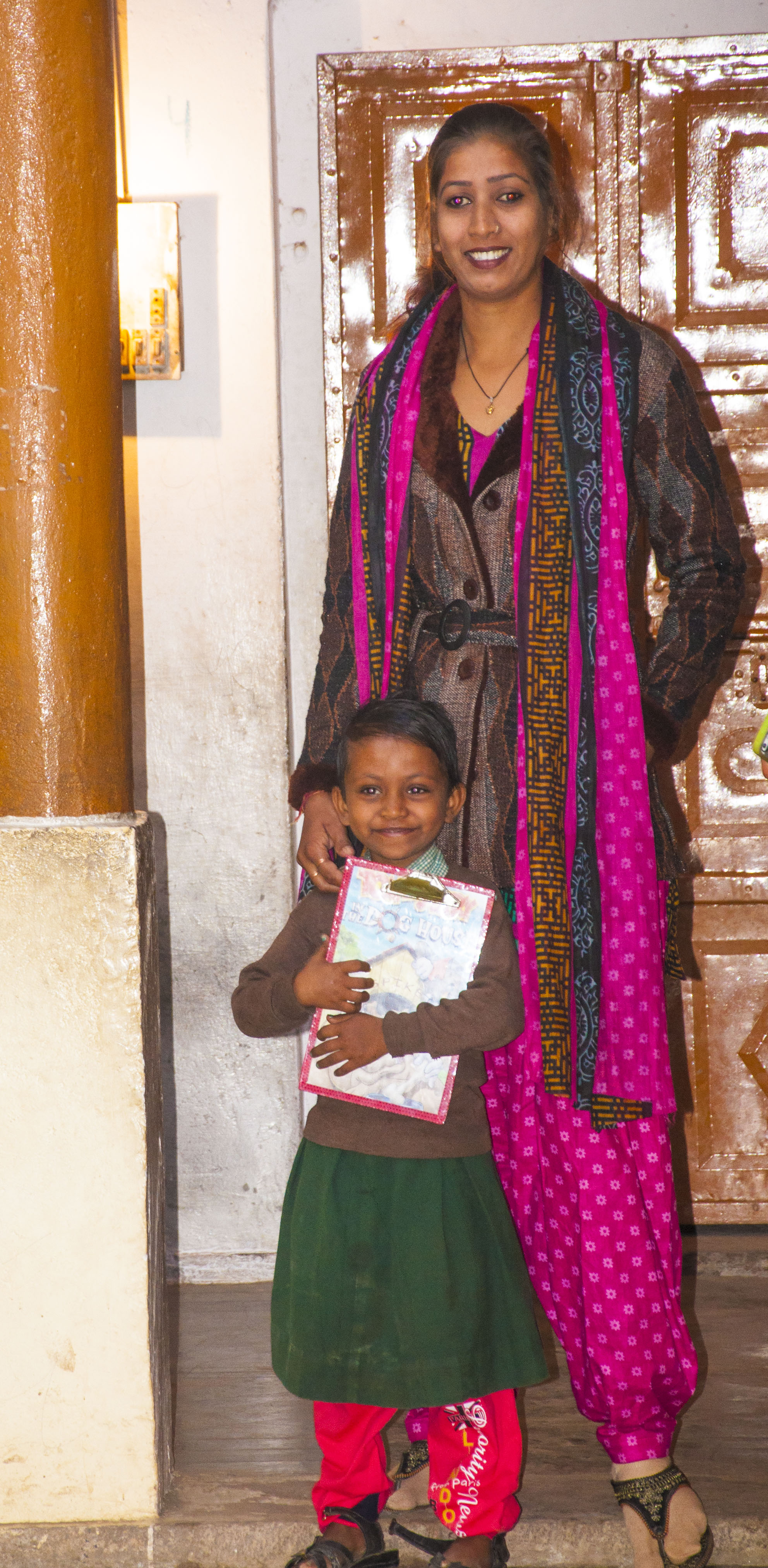 The future of India lies in the education of its children. Here we see a teacher with her star pupil, 4 year old Tina, who sang for us.
