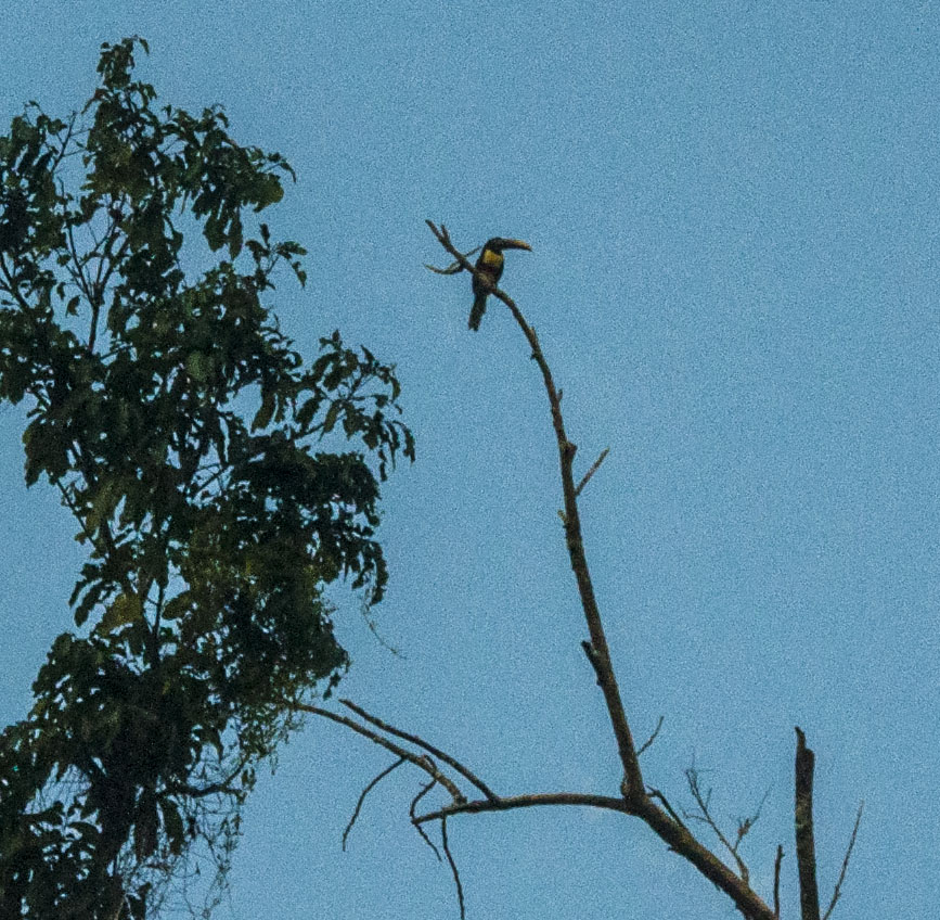 And a Chestnut Eared Aricari called from above. How exciting to see a Toucan high up in a tree. If only I had a telephoto lens.