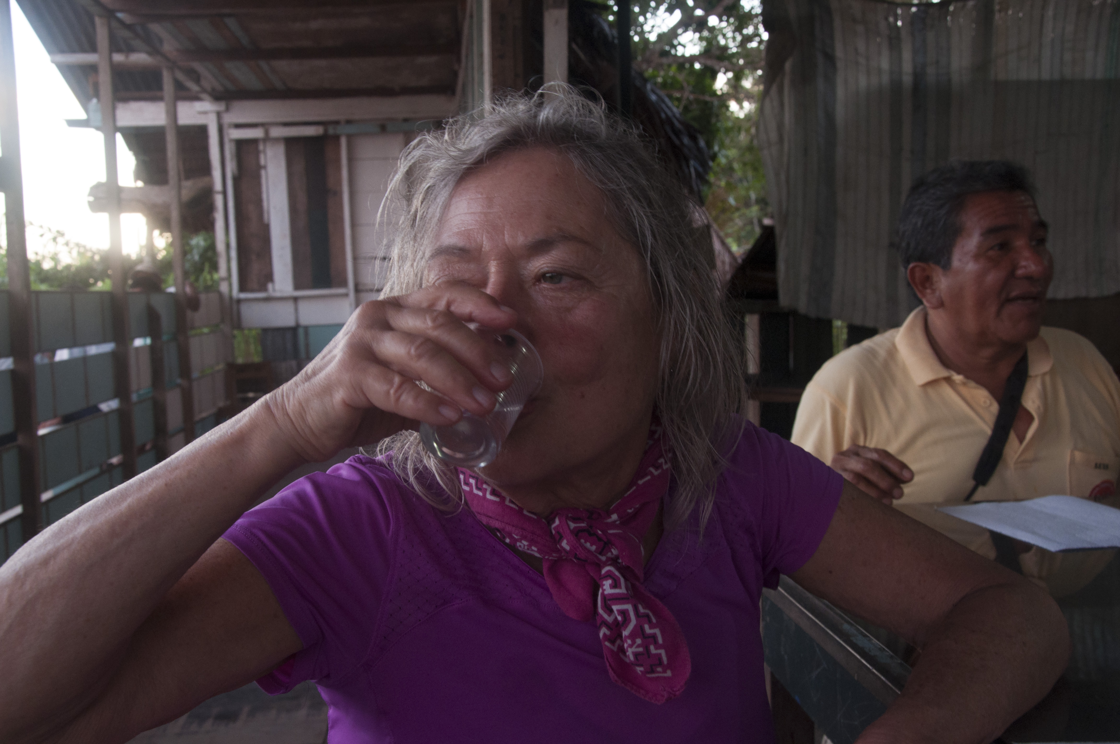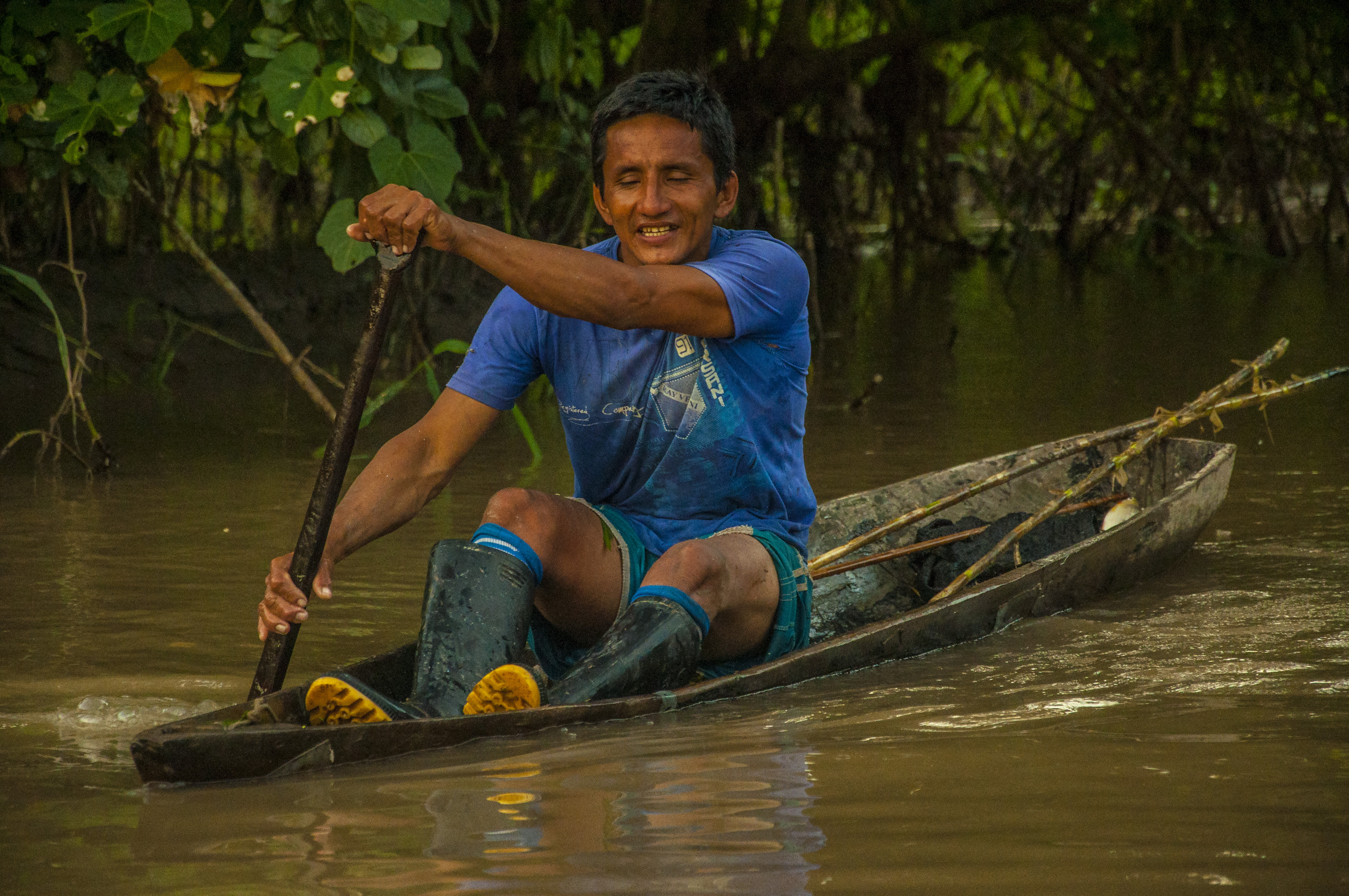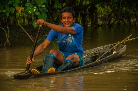 We met up with a fisherman in his traditional low slung dugout. It was the end of the day and he was coming to collect the catfish caught in the hooks set up on fishing lines in the water. Luis pointed out that one should be aware of a large Anaconda Snake leaping out of the water and grabbing a short woman and dragging her from the boat. Joanne couldn’t get this image out of her mind.