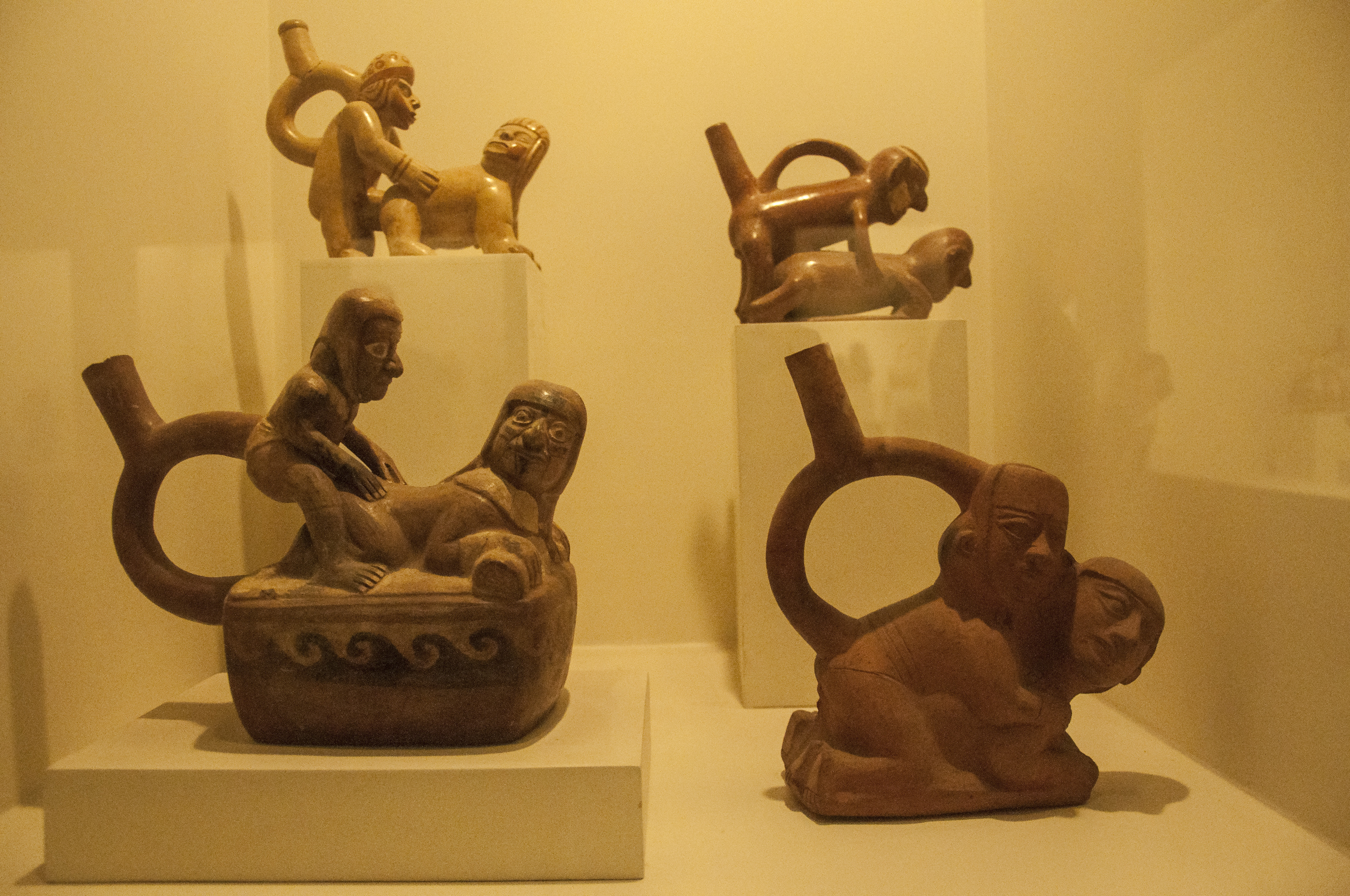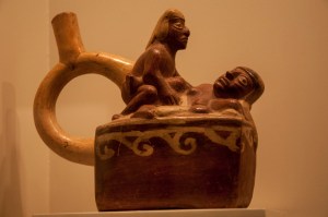 At the Larco Museum in Lima, there is an extensive collection of pre-Columbian artifacts from various regions of Peru with explicitly erotic pottery. The following is a brief peek. The Moche had a fascination with sex. SEXUAL CONTENT ALERT!!!!!