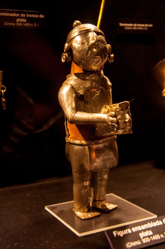 We spent two days hanging out at museums trying to learn what we could as quickly as we could about the diverse indigenous cultures that existed long before the Incas arrived. Although there is evidence of human habitation in Peru as long ago as the eighth millennium BC, there is little evidence of organized village life until about 2500 BC. It was at about this time that climatic changes in the coastal regions prompted Peru’s early inhabitants to move toward the more fertile interior river valleys. For the next 1500 years, Peruvian civilization developed into a number of well organized cultures.
