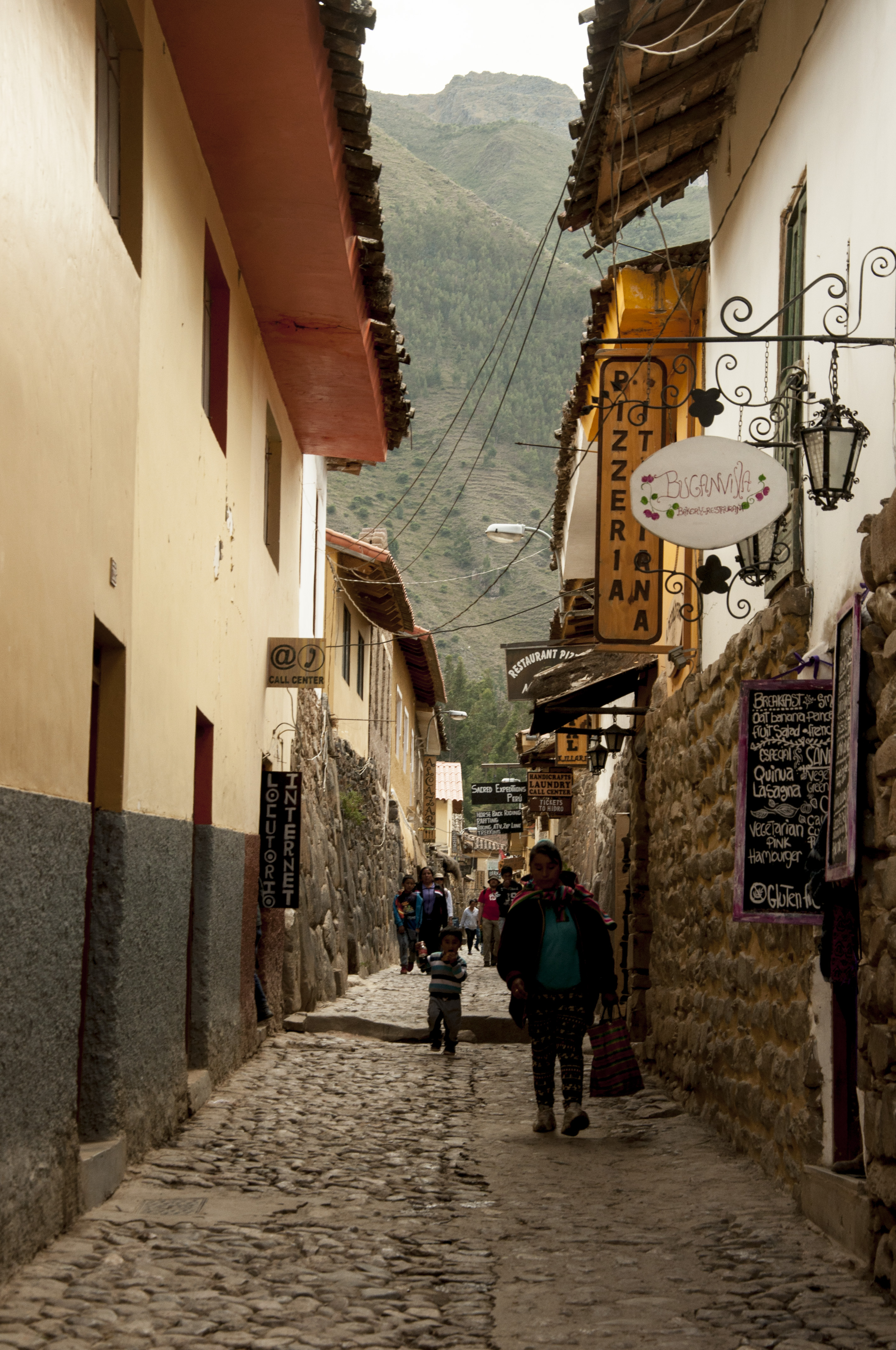 Ollantaytambo has charming cobblestone streets and many restaurants and hostels for young tourists (American,European and Asian) to hang out.