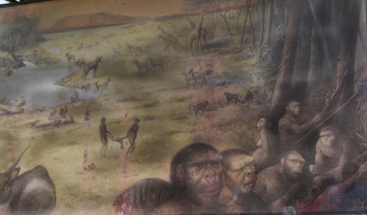 Africa is where the earliest evidence of human life has been found, and Olduvai Gorge is one the the most important areas of discovery. It is a deep ravine famous for the fossils of ancestors of humans found there by Louis and Mary Leakey. Olduvai was the home to Homo Habilis, an earlier human species. Above is a mural depicting what life may have been like at this site.