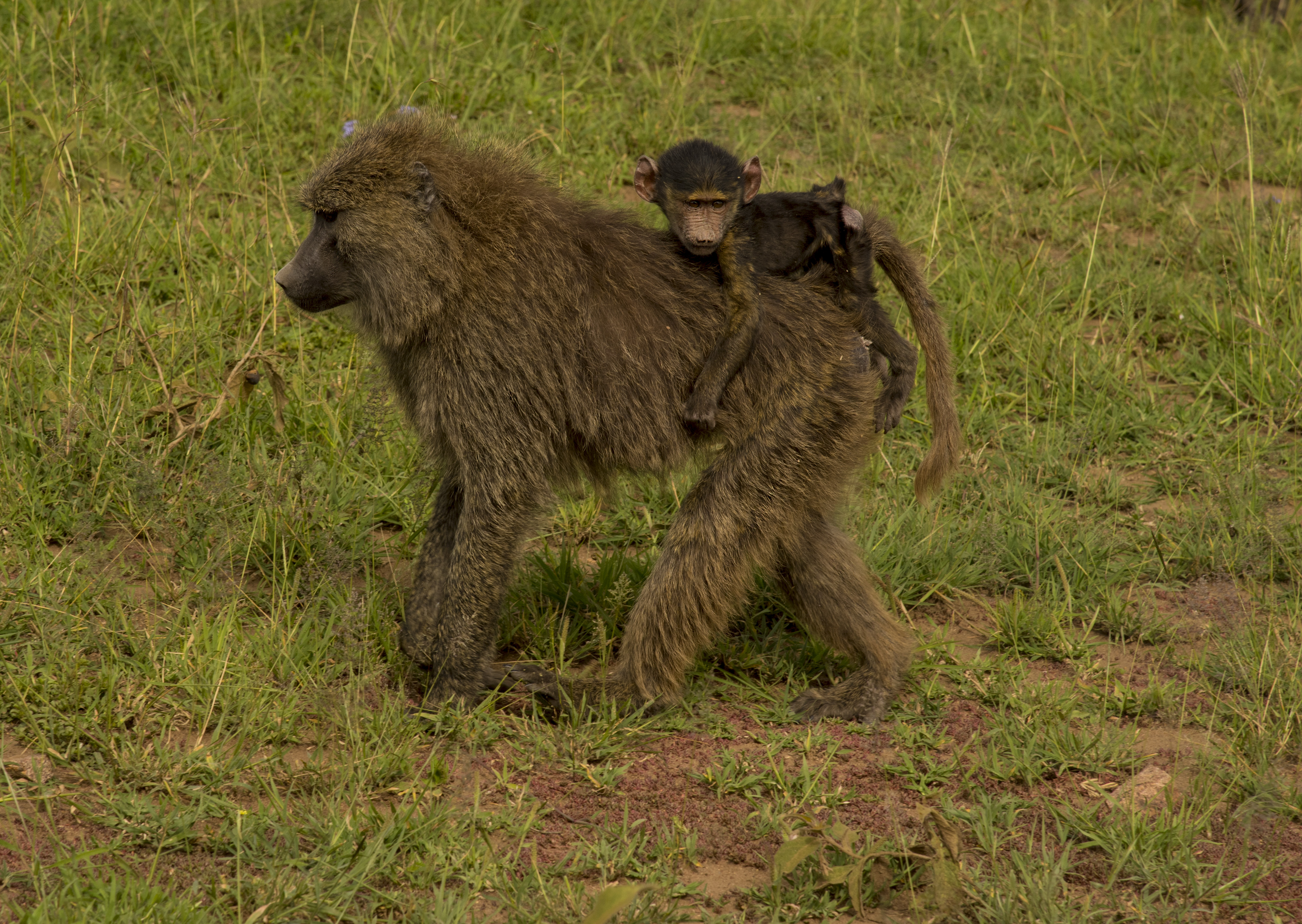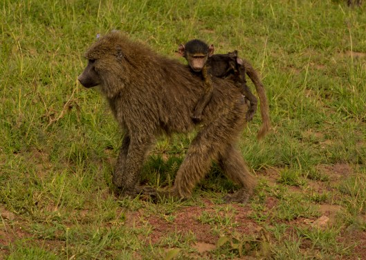 This baby baboon going for a ride.