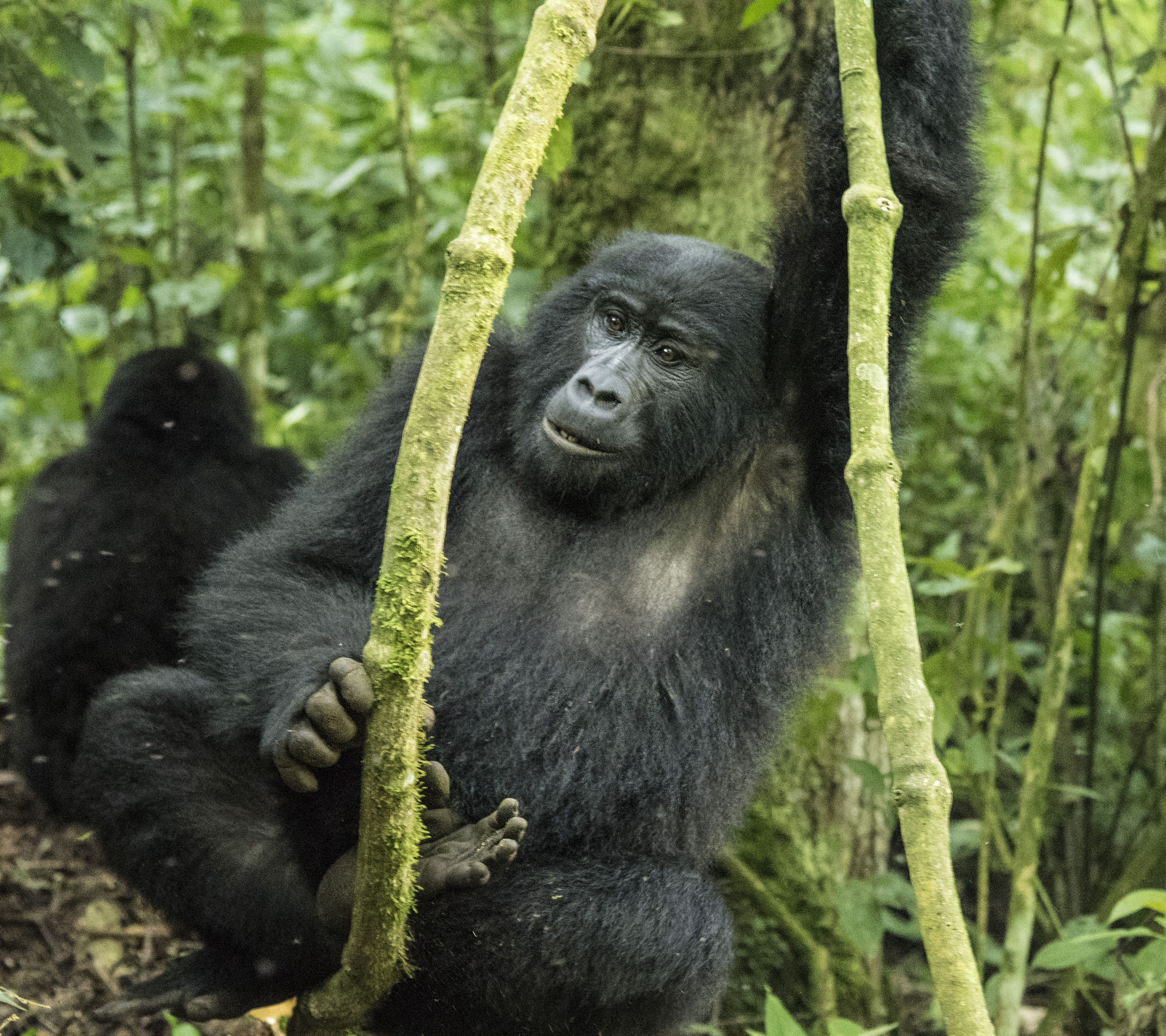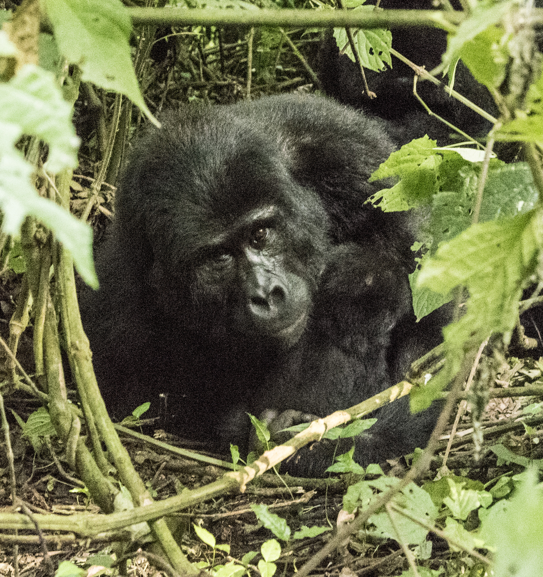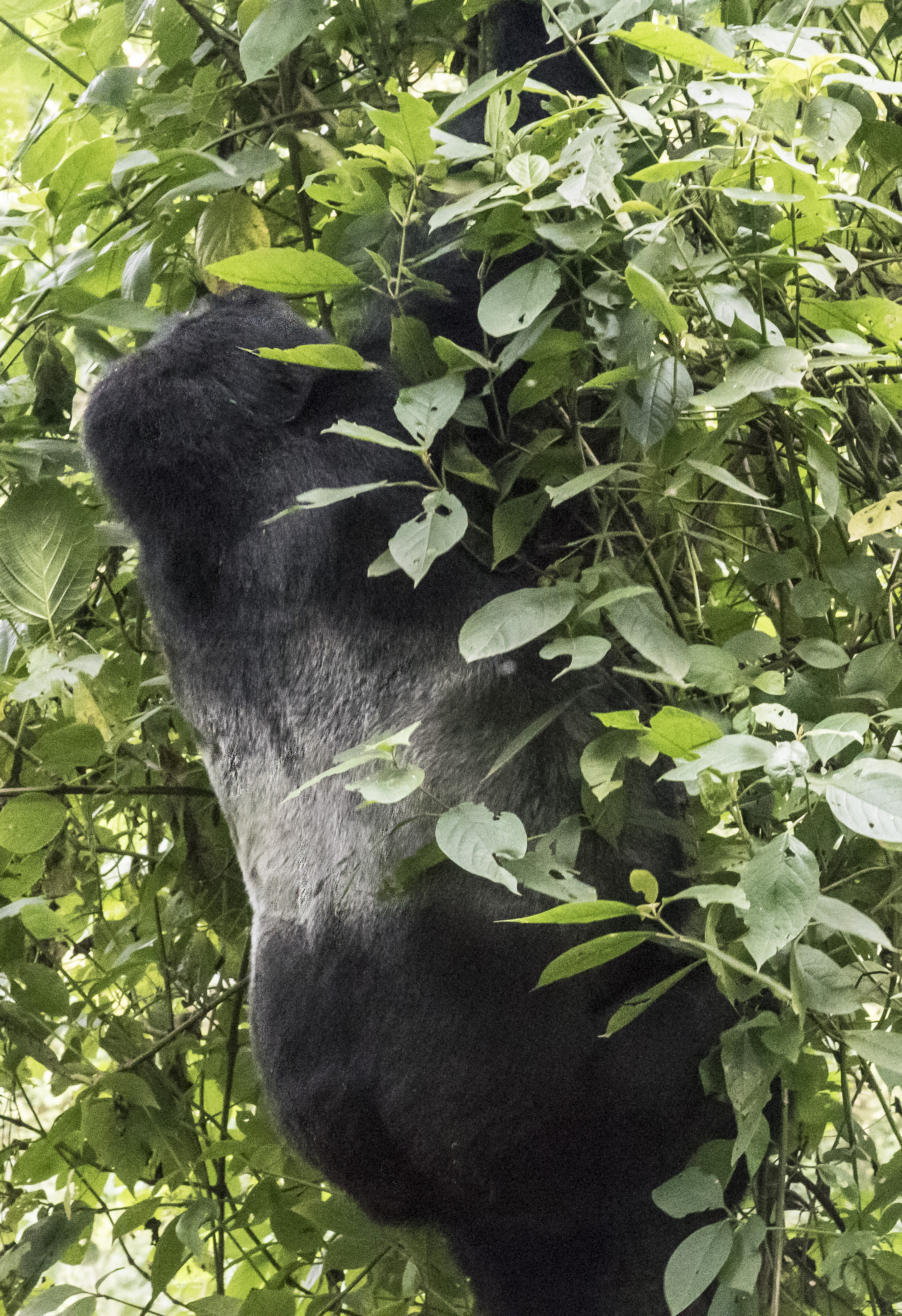 The Impenetrable National Park is a World Heritage Site and is aptly named. This view is from the road. The descent is very steep and dark. There are no well-beaten trails to follow. Just bushwhacking behind the trackers who chop away at the growth with machetes.