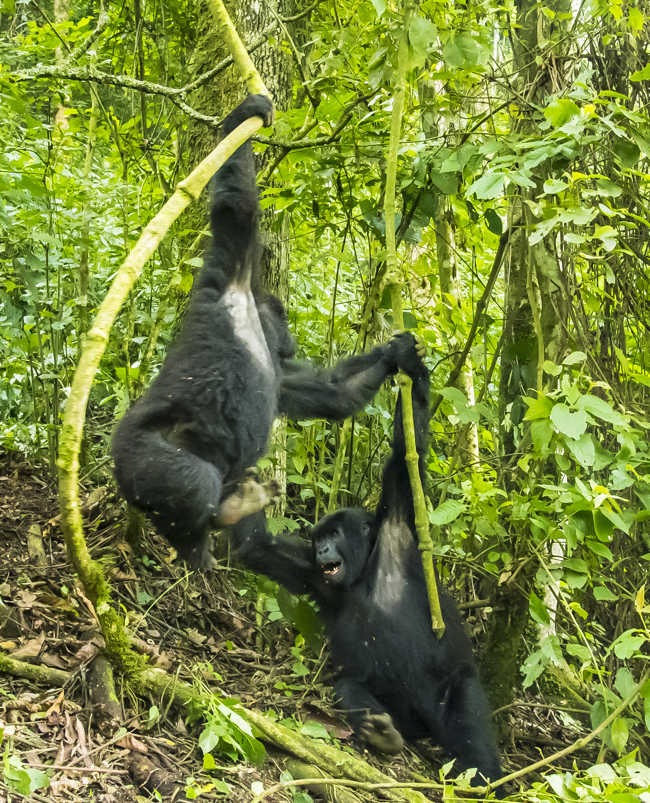 They started swinging on the vines heading straight for us. Duck!