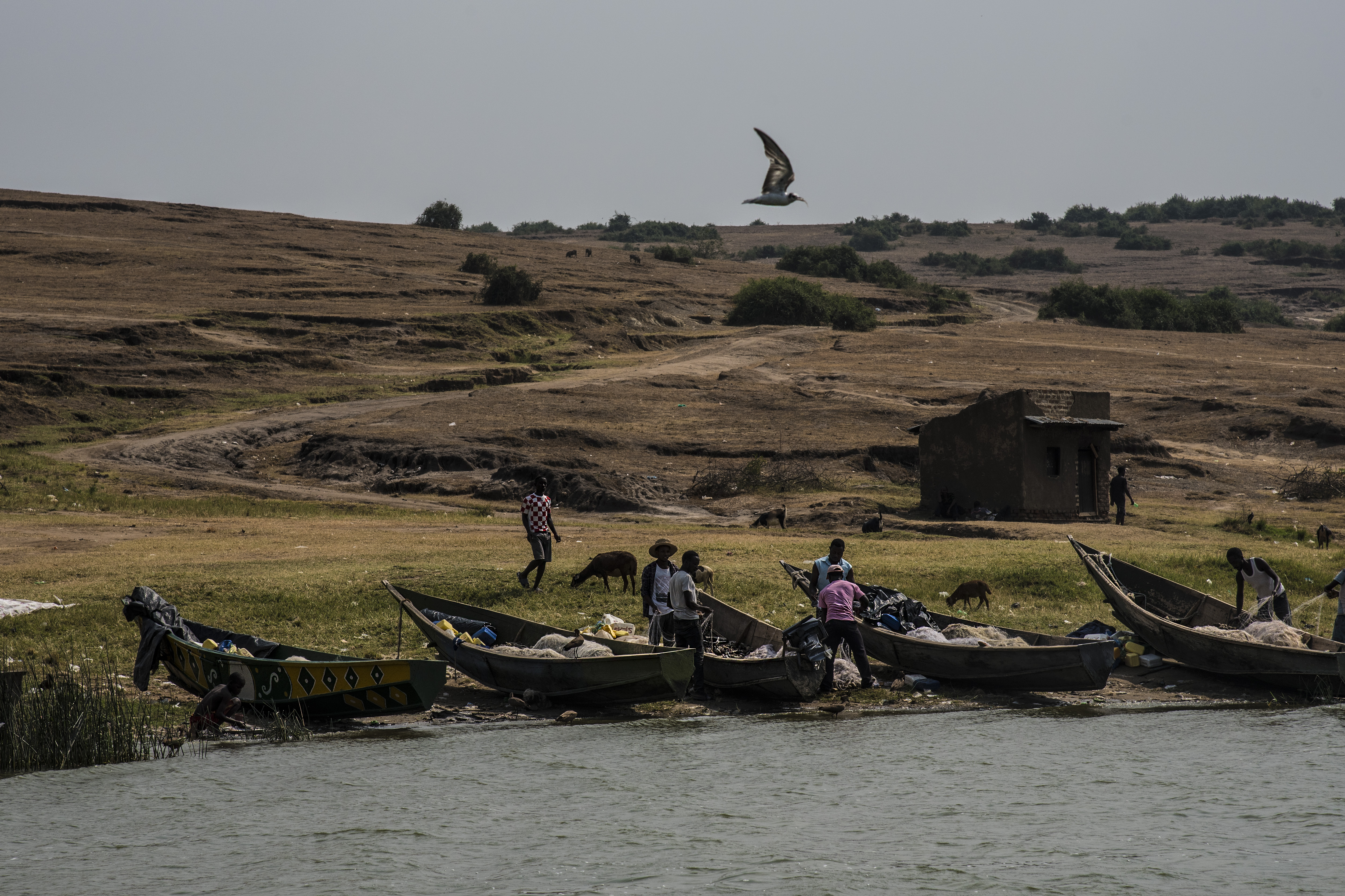There are more than 20 fishing villages inside Queen Elizabeth National Park. When the park was established in 1952, people already living on the lake shores who fished for their livelihood were allowed to remain. Today they have an uneasy relationship with the hippos, both vying for shrinking habitat.