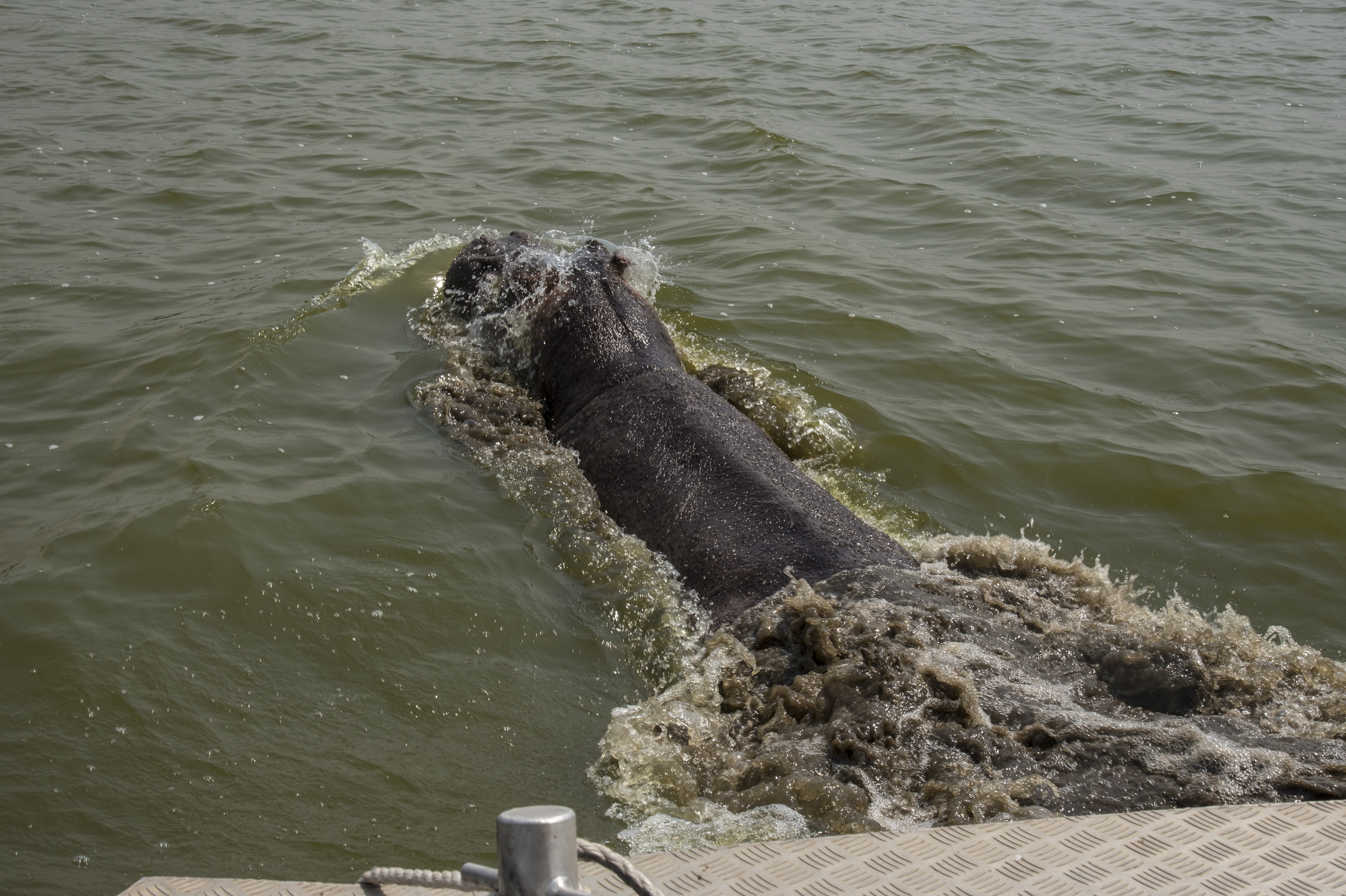The small skiffs are easy targets for the hippos who can weigh up to 9,000 lb. and grow to 16.5 feet long.