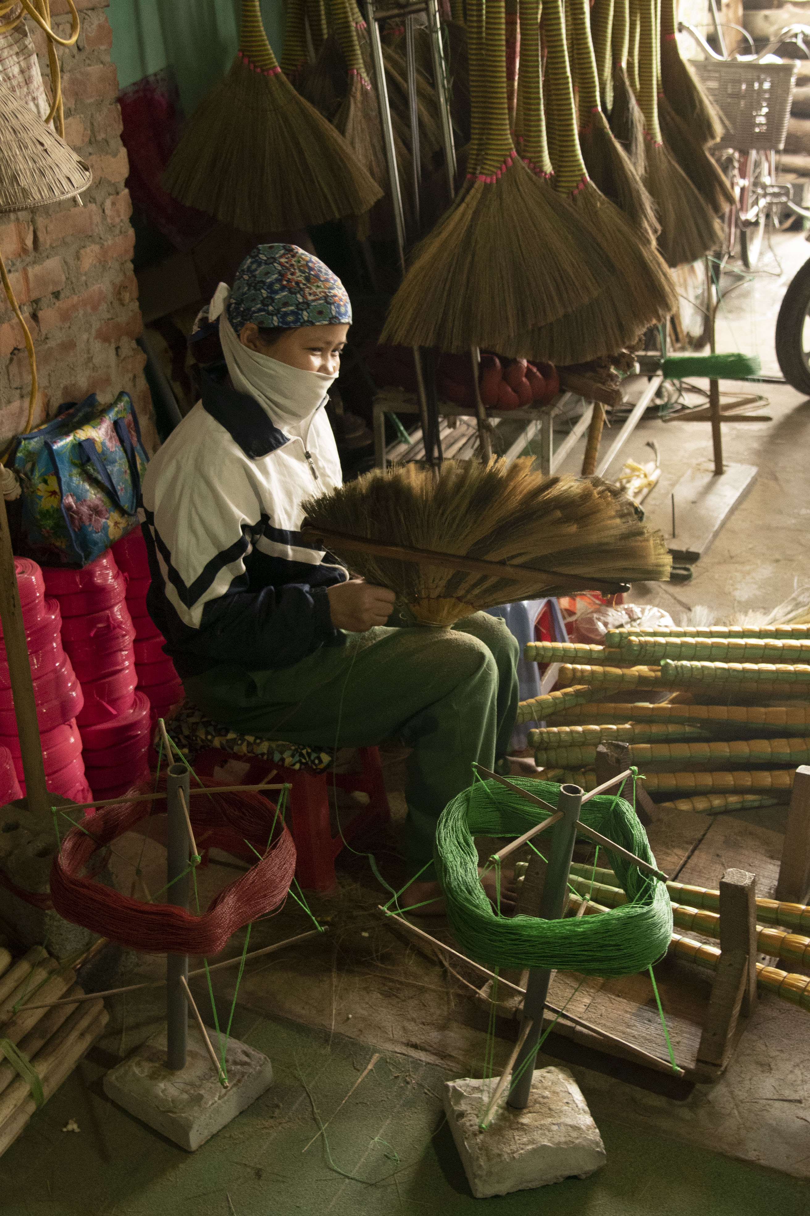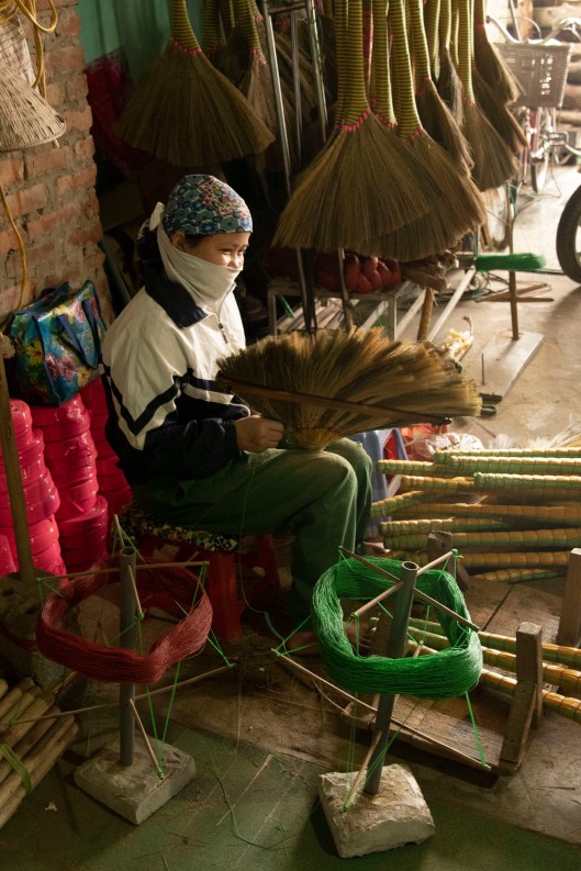 Women workers at a broom factory. These are beautiful brooms. We wished we could have fit one in our suitcase.