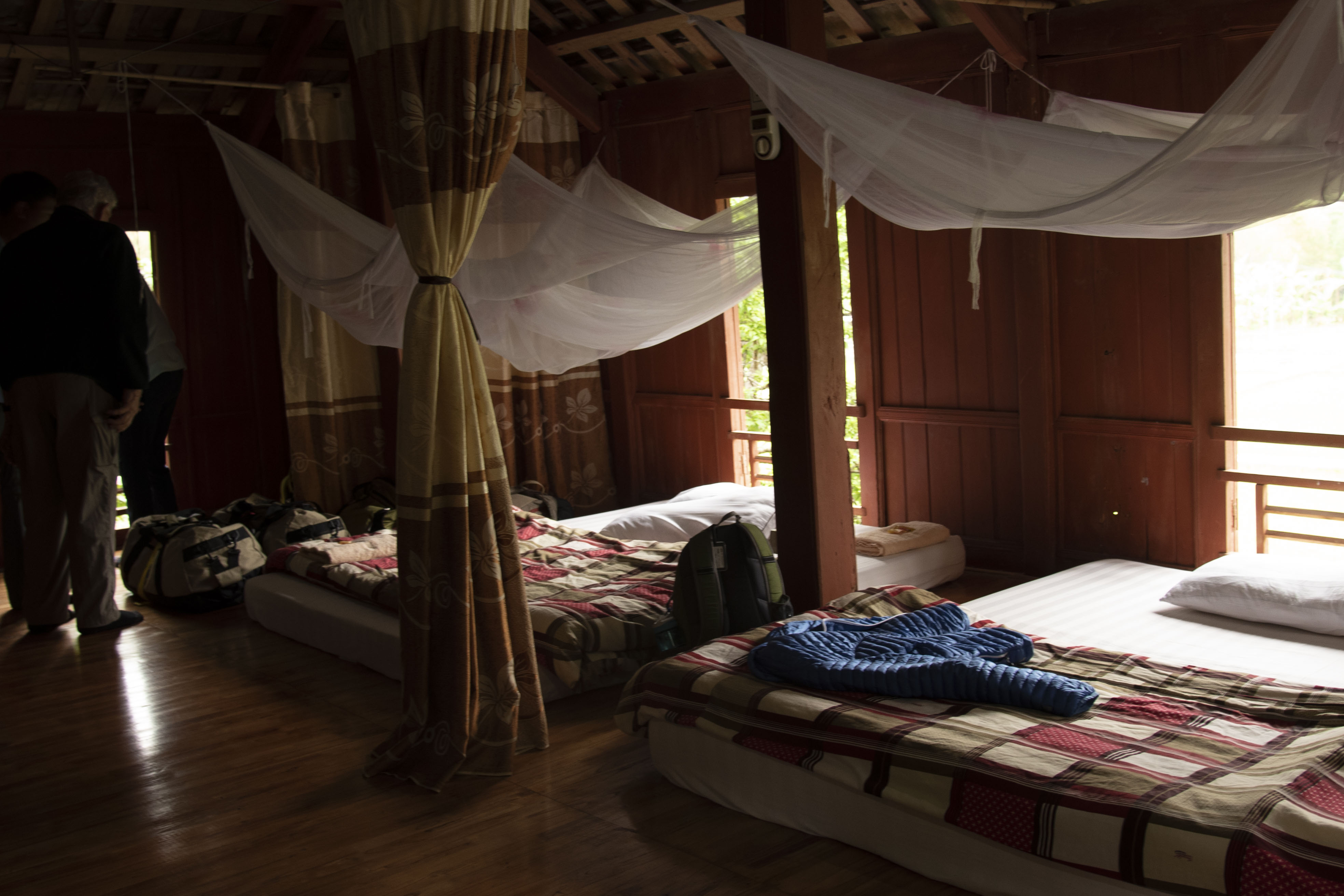 Mosquito netting and curtains surrounded our double beds which overlooked the rice fields.