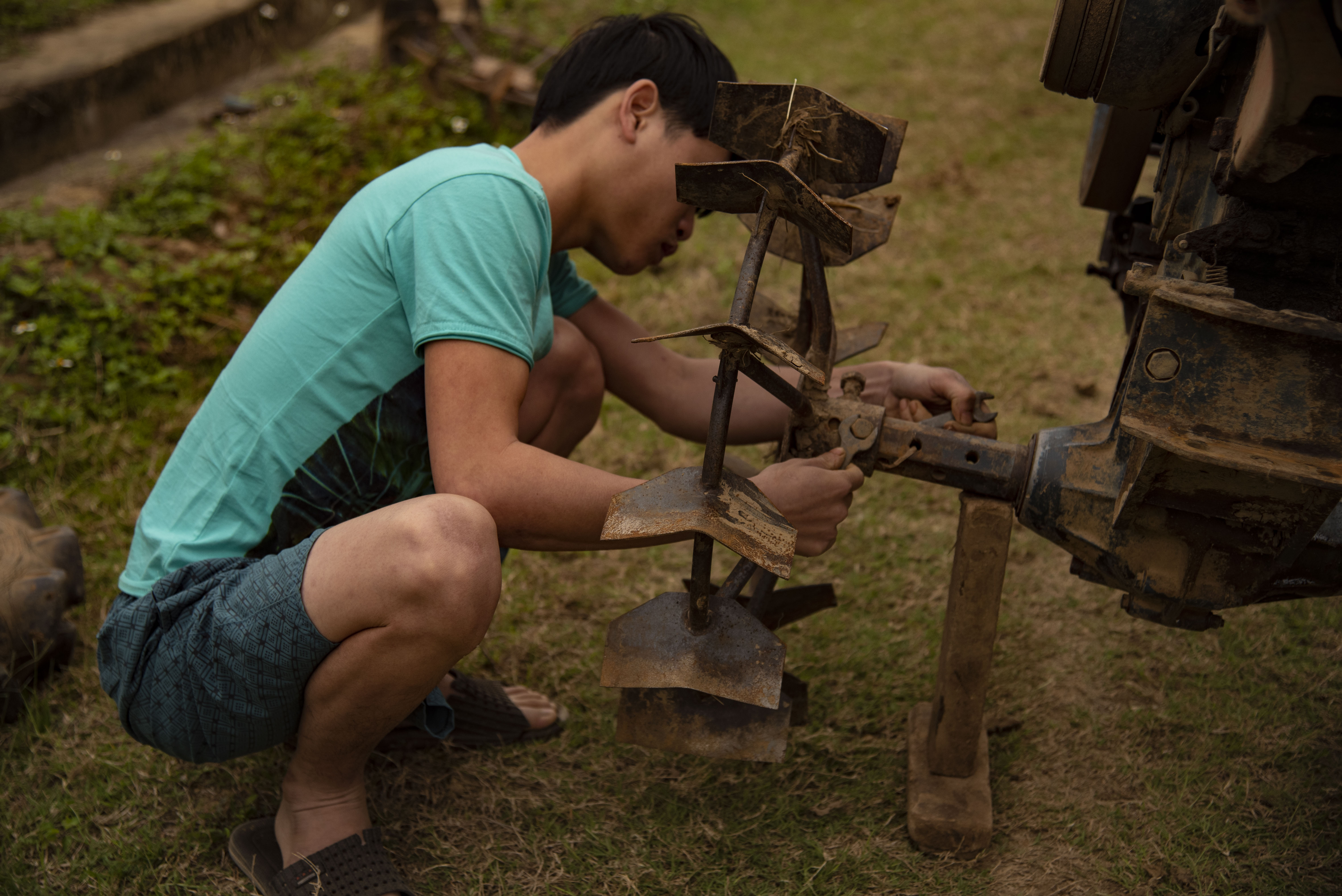 Mitch getting a handle on some farm machinery.