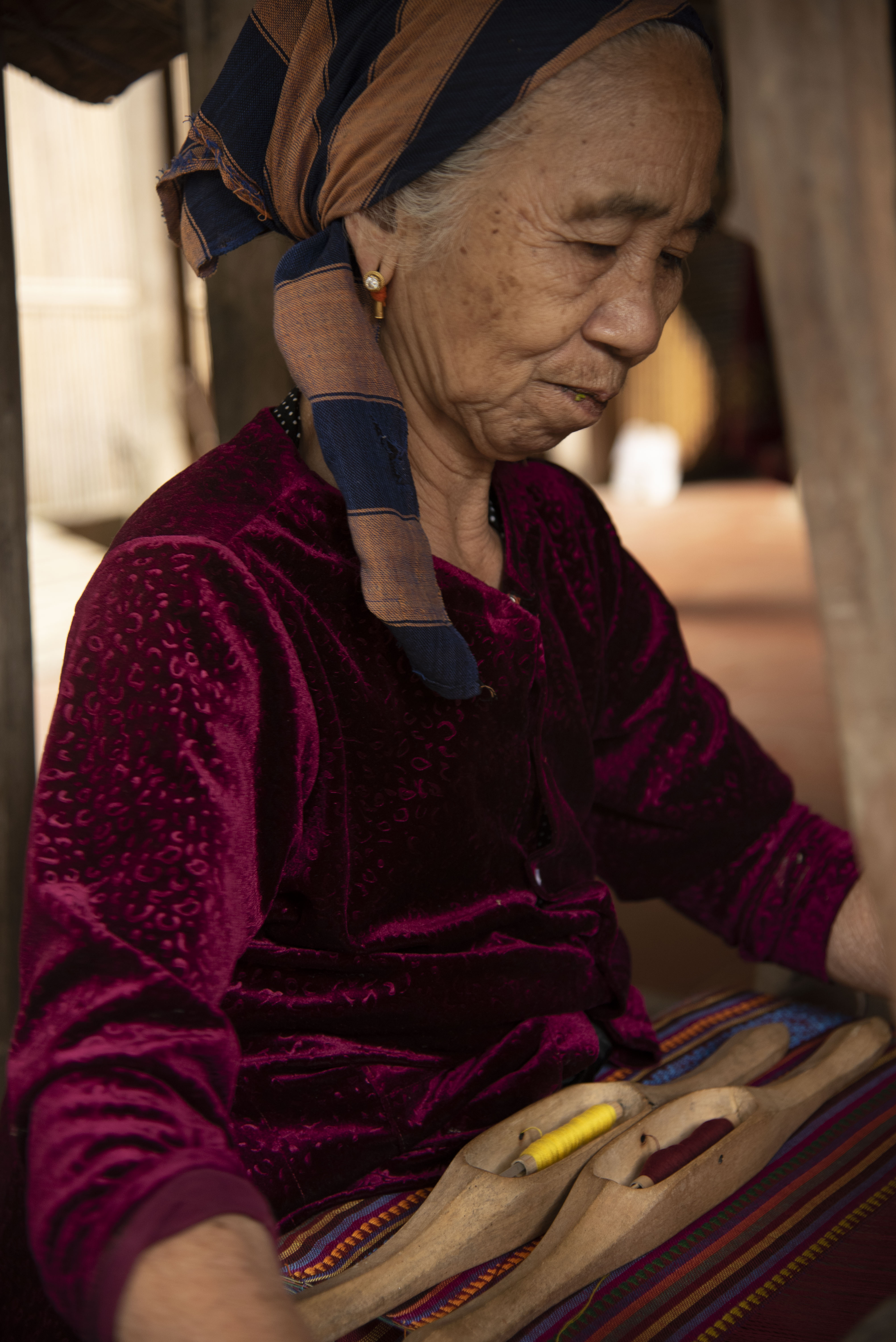 The owner of the homestay is a weaver. You could see her during the day at her ancient loom creating beautiful textiles.