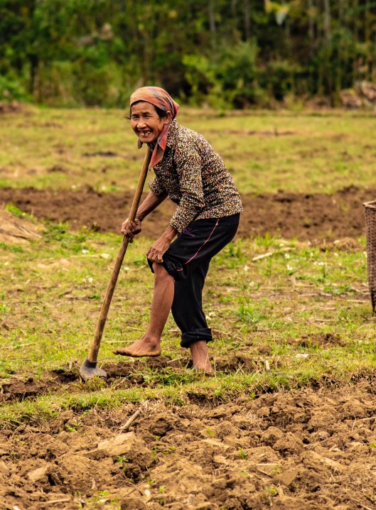 It is fairly common to see older women carrying heavy loads on their backs.