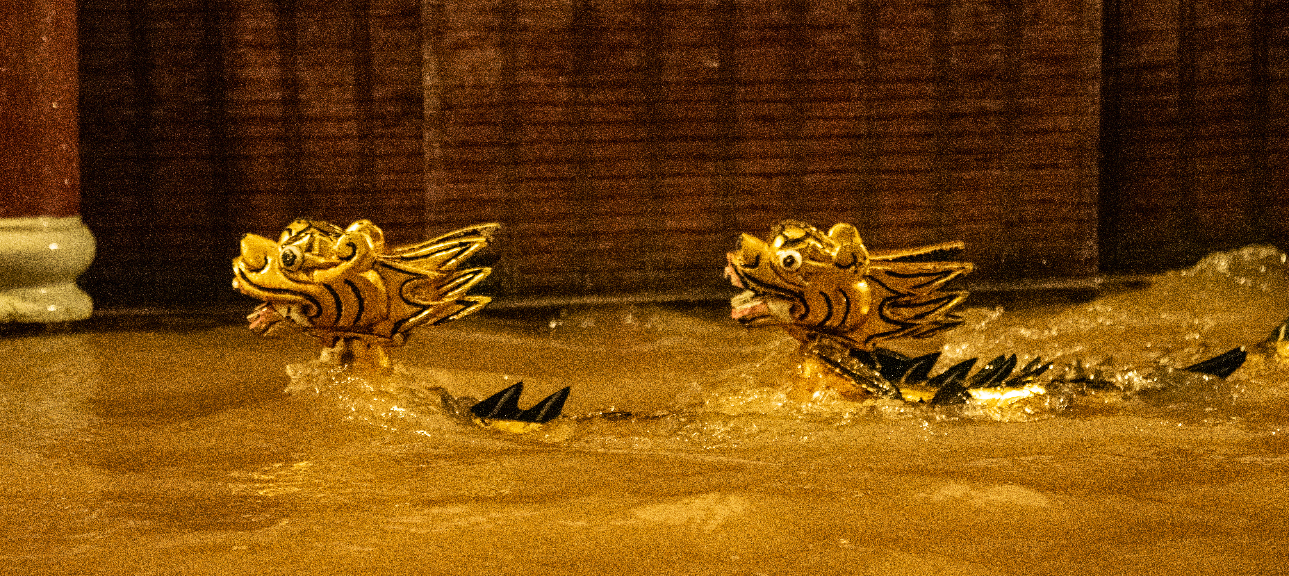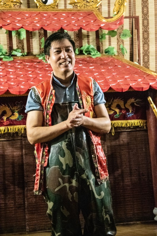 We got to see a water puppet show at the puppet master’s workshop. This involves hand made puppets held by bamboo poles under the surface of the water, managed by the puppet master who sits in the water behind a screen. The tradition of water puppetry originated with peasant stories in the Red River Delta at least 1,000 years ago. The performances traditionally took place when the rice fields were flooded, to the delight of the farmers and their families.