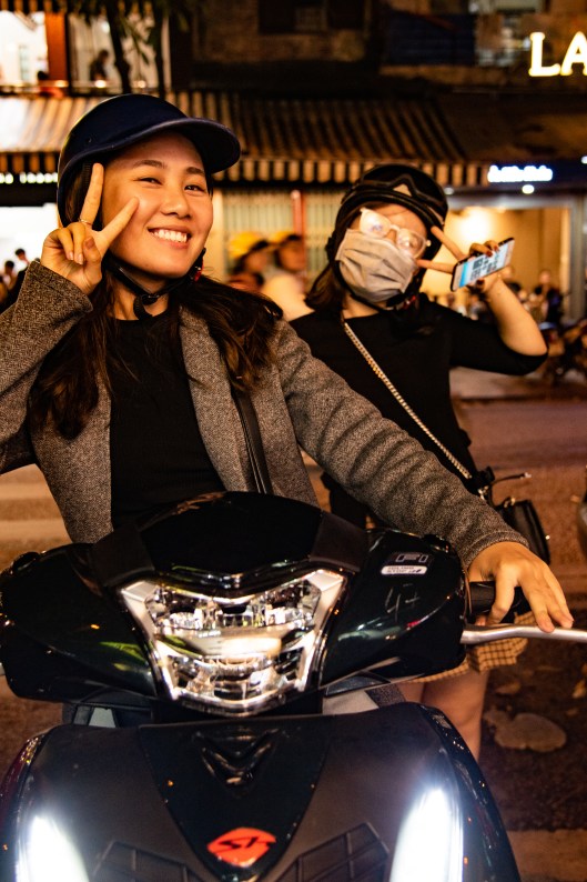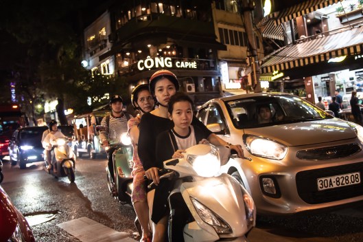 In the evening, families go shopping on their motorbikes. Vietnam is a young country with 60% of the population under the age of 30.