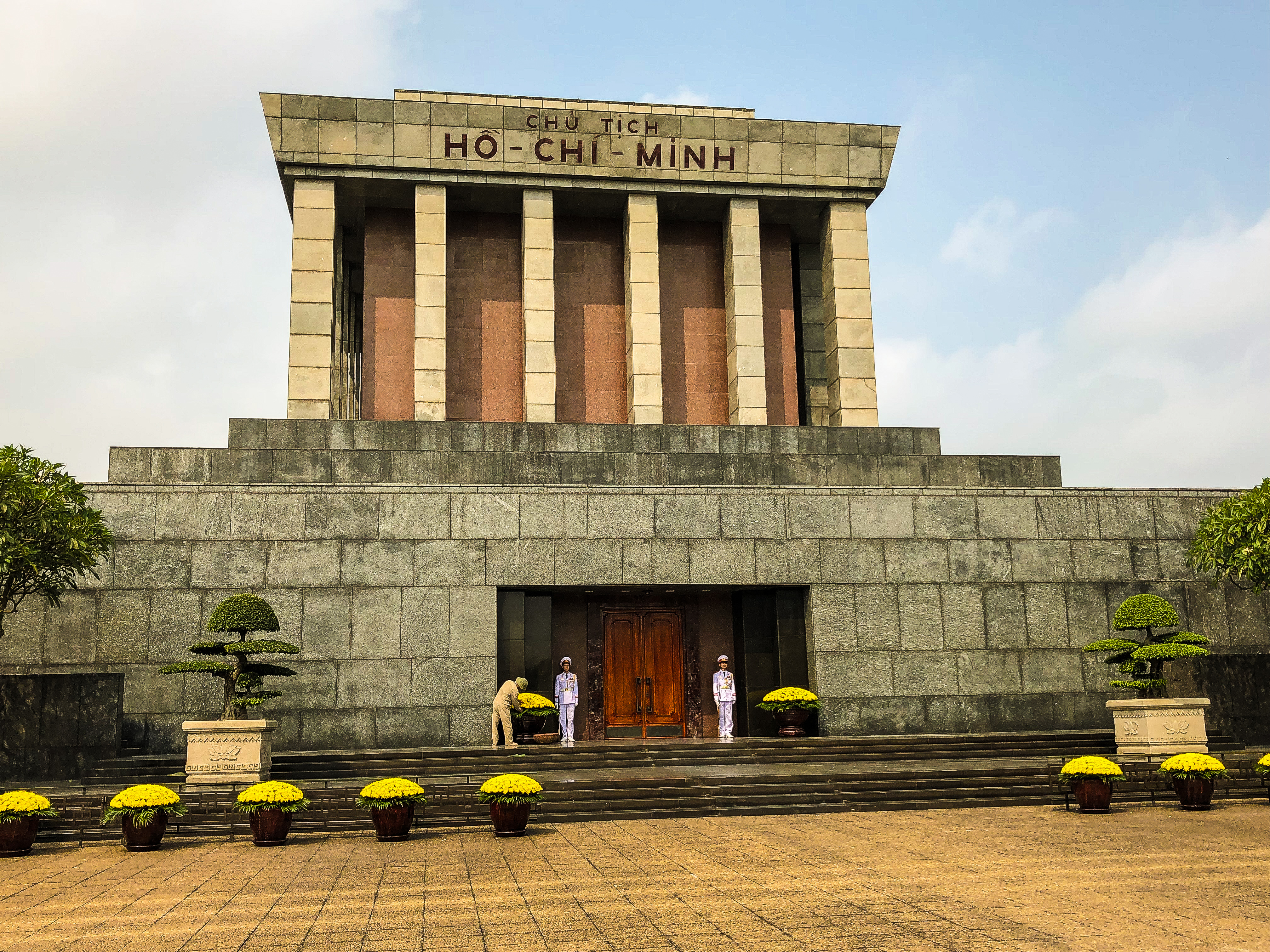 The body of Ho Chi Minh, father of Vietnam independence, lies in state in this mausoleum.