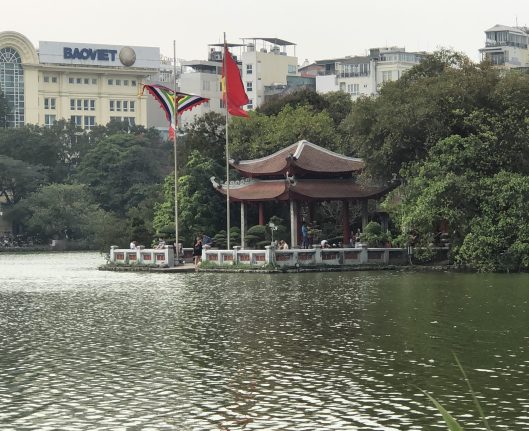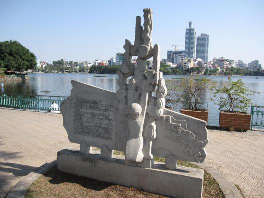 This monument is dedicated to John McCain whose plane was shot down and crashed into the Truc Bach Lake where he was captured and held in the Hanoi Hilton prison for five years. Over the years since then McCain established a connection with the Vietnamese people and today is an honored symbol of reconciliation. (Photo by Deena Atlas)