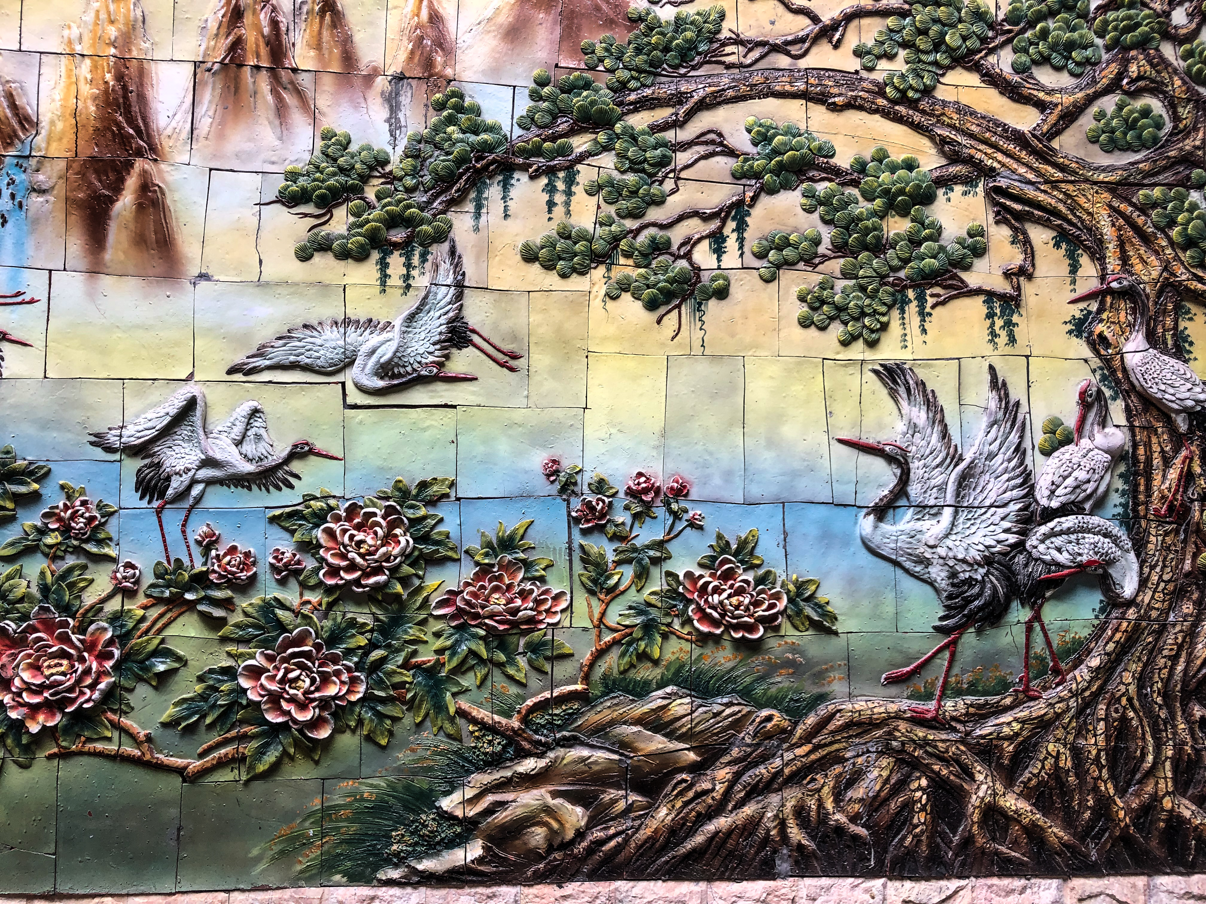 Bat Trang, a small village outside of Hanoi, is well known for its high quality ceramics. Huge ceramic mosaics such as this can be found in the more upscale Hanoi restaurants and hotels.