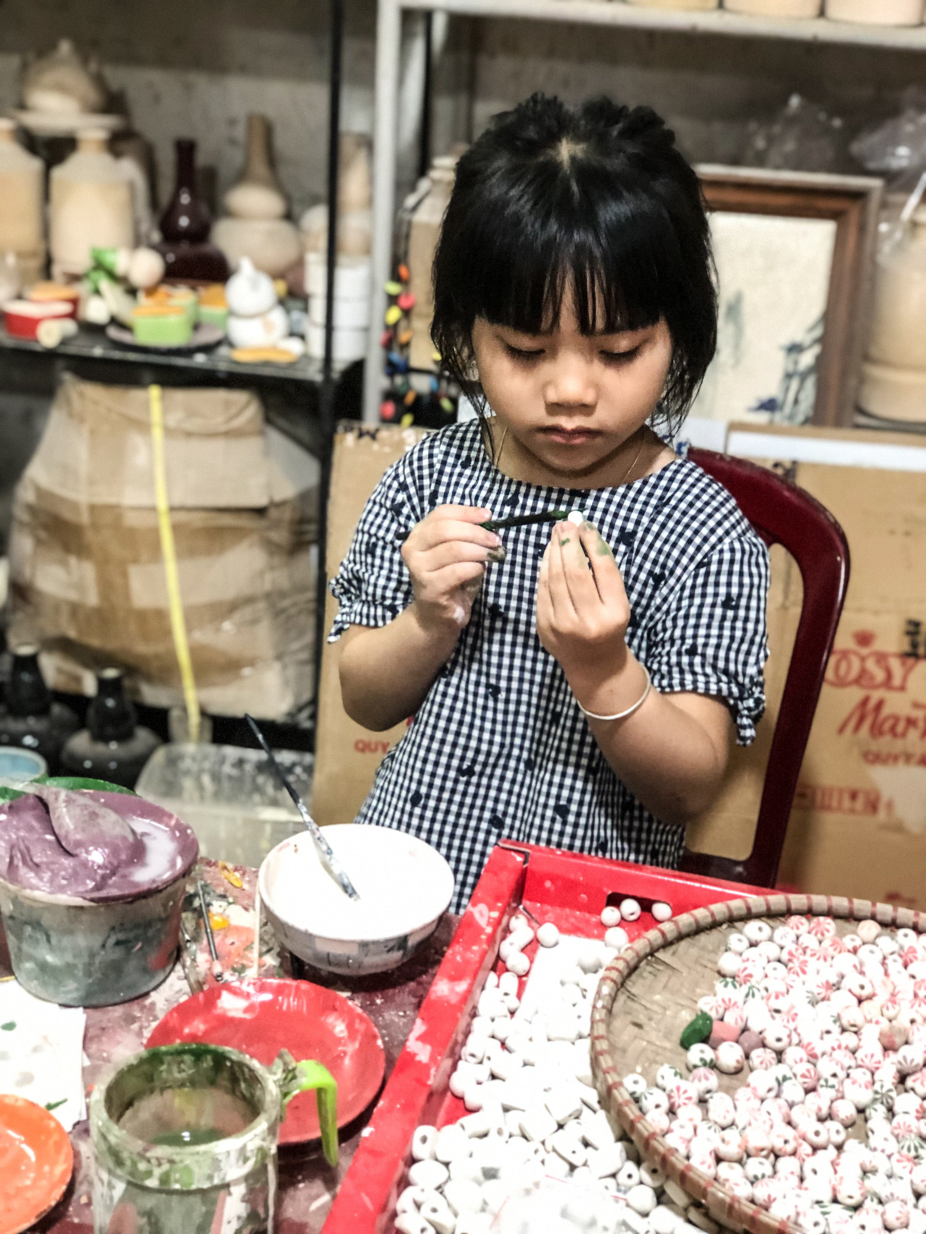 The workshop owner’s granddaughter is practicing the trade she will one day work at.