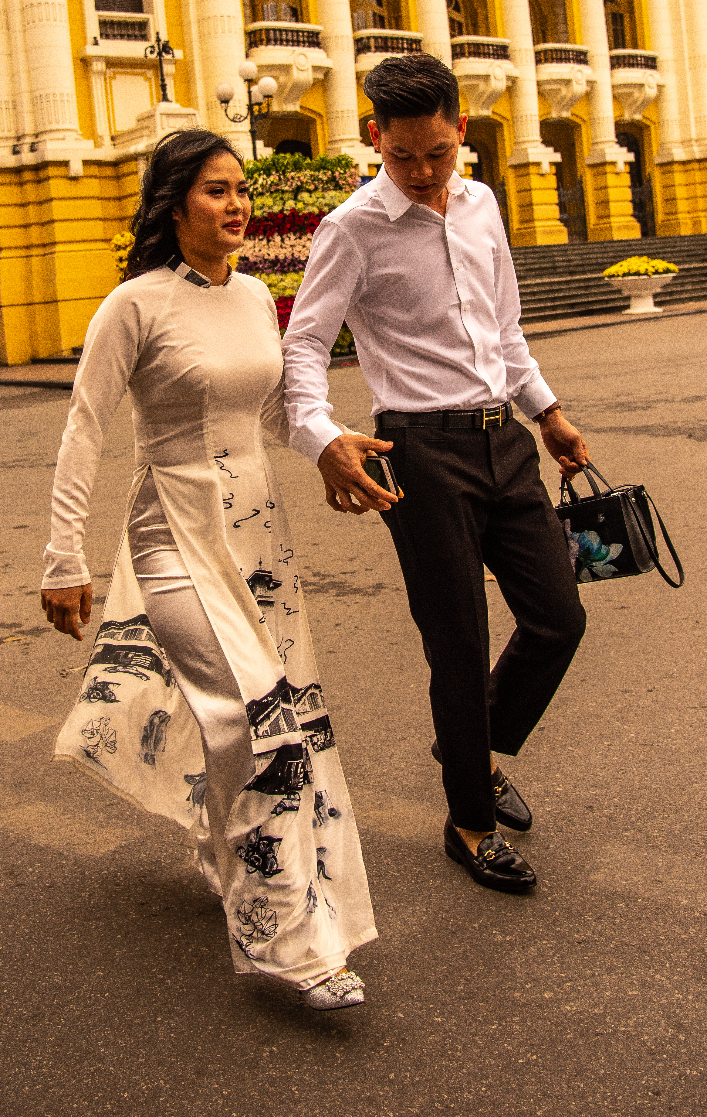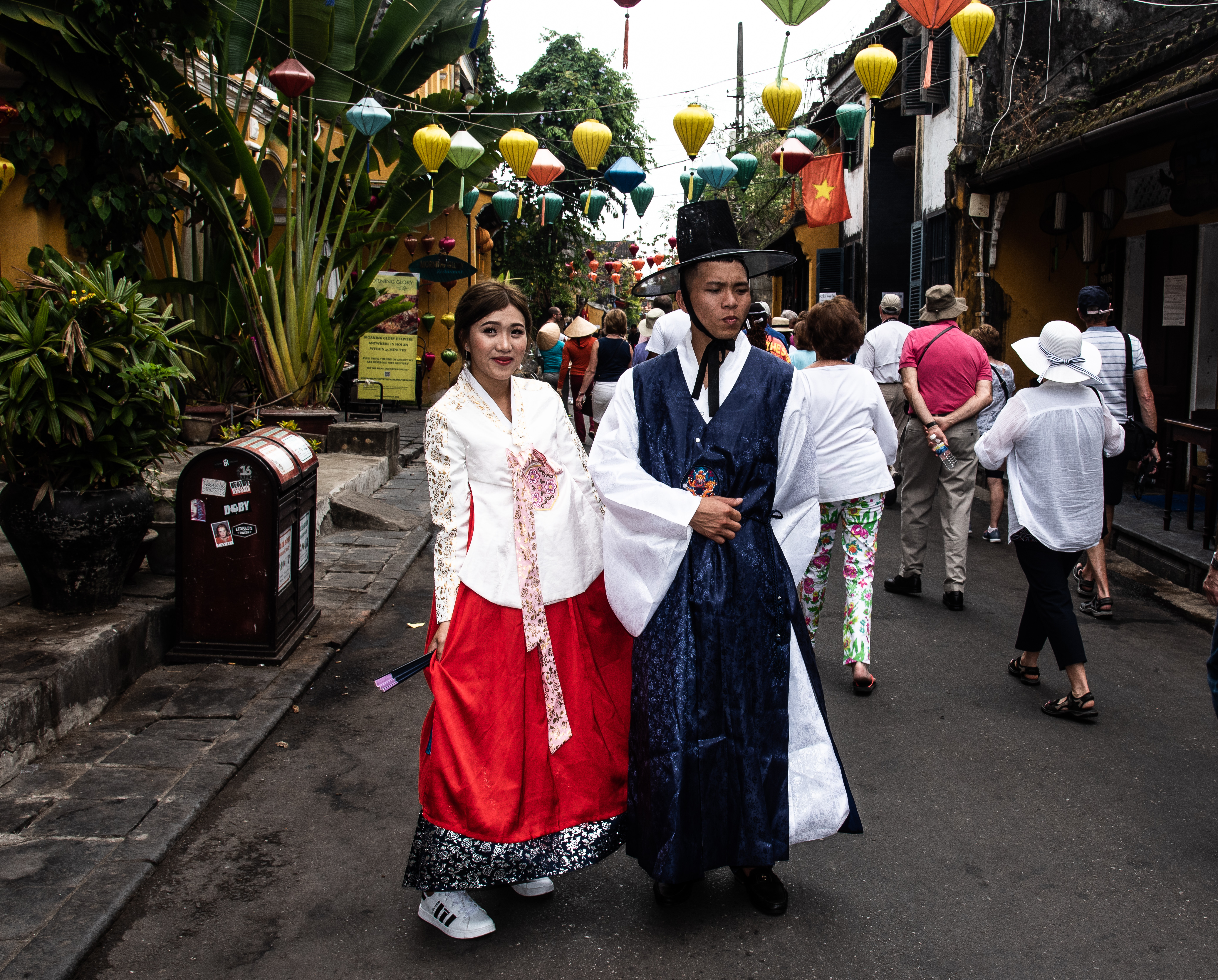 This young couple arrived in the traditional Korean wedding costume. Hoi An is a clothier center, the place to go for a bespoke silk Ao Dai or a men’s suit. What is an Ao Dai you might ask?