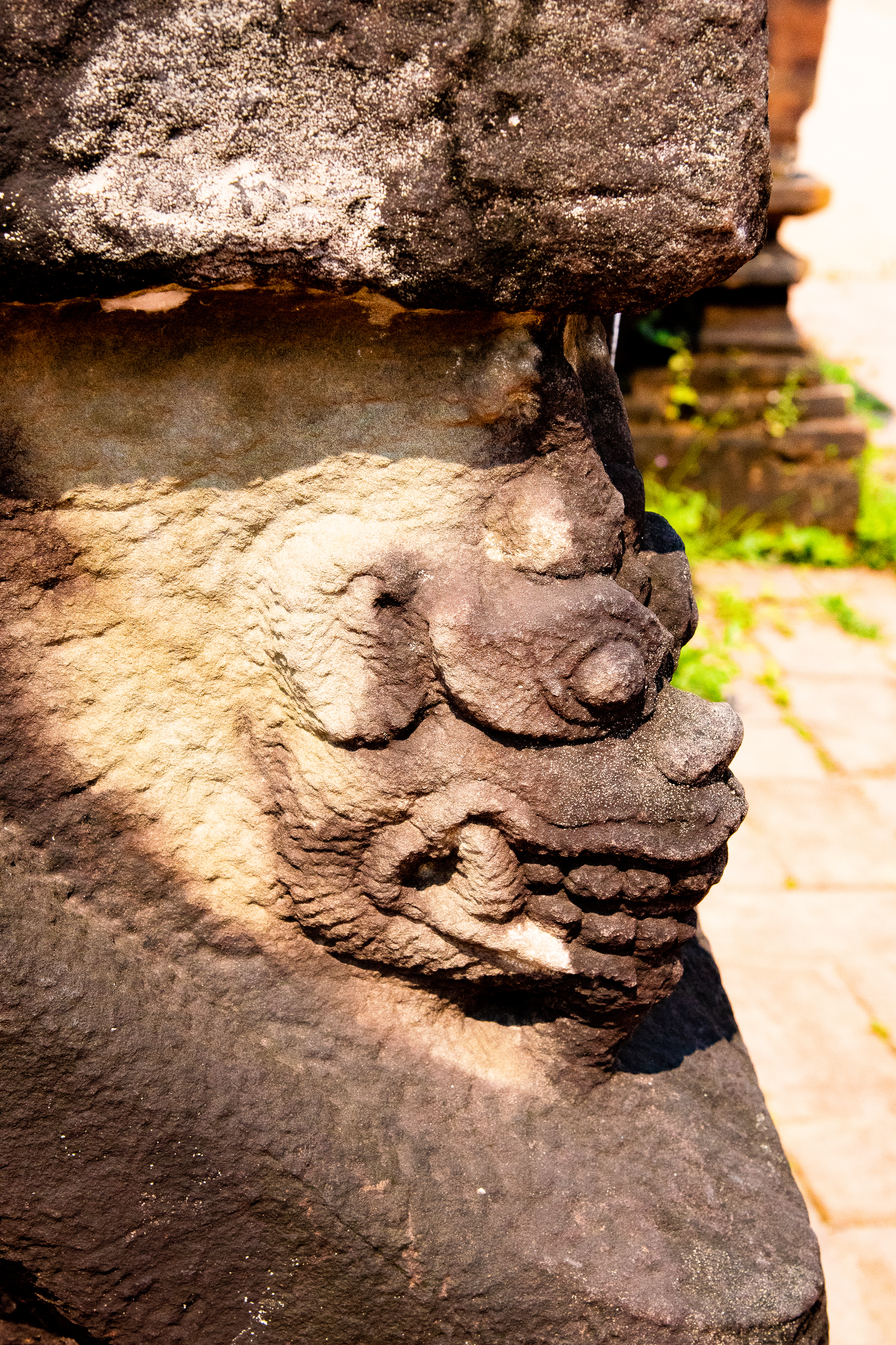 Guardian monsters, carved of sandstone, decorate the buildings.