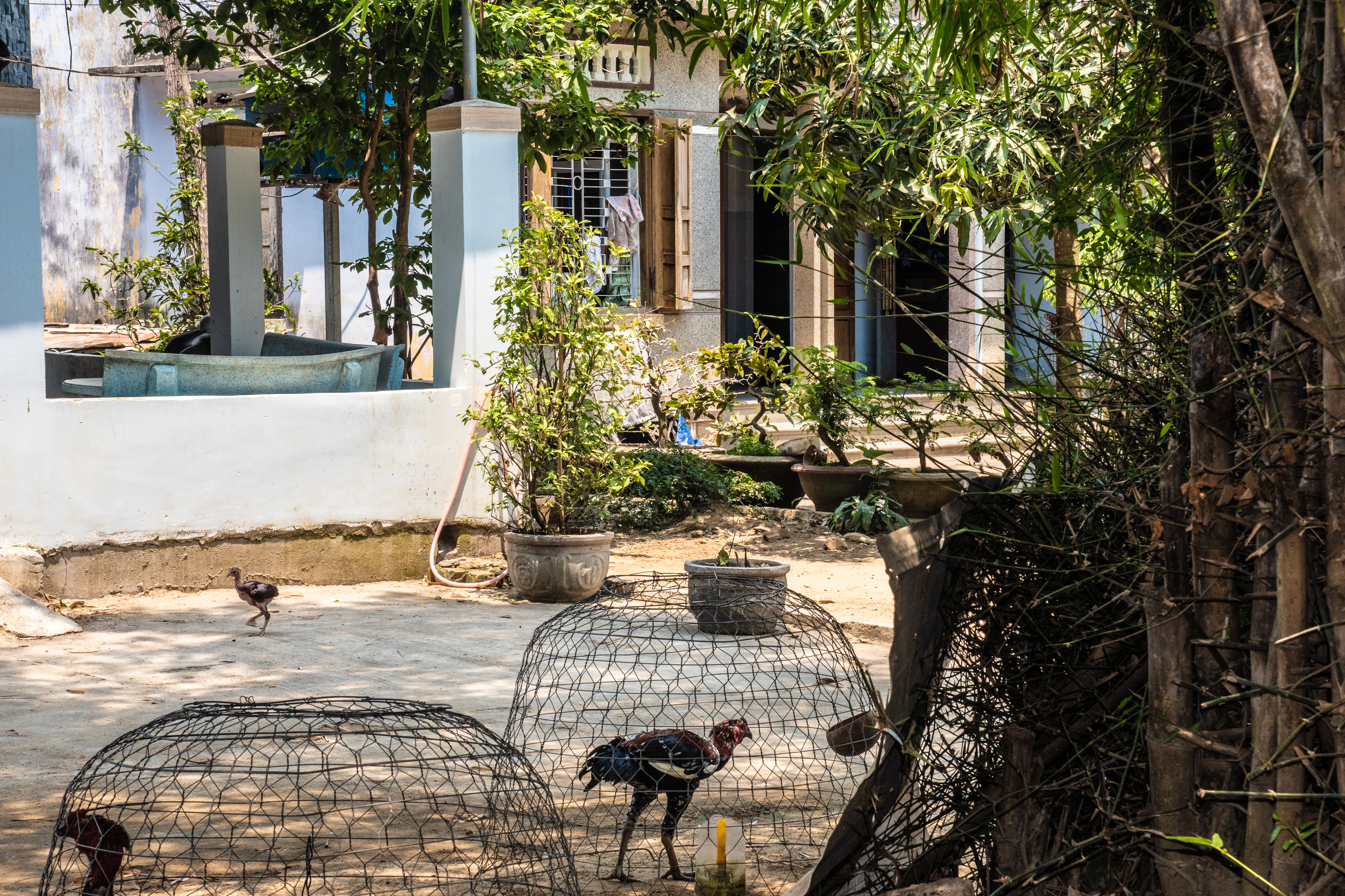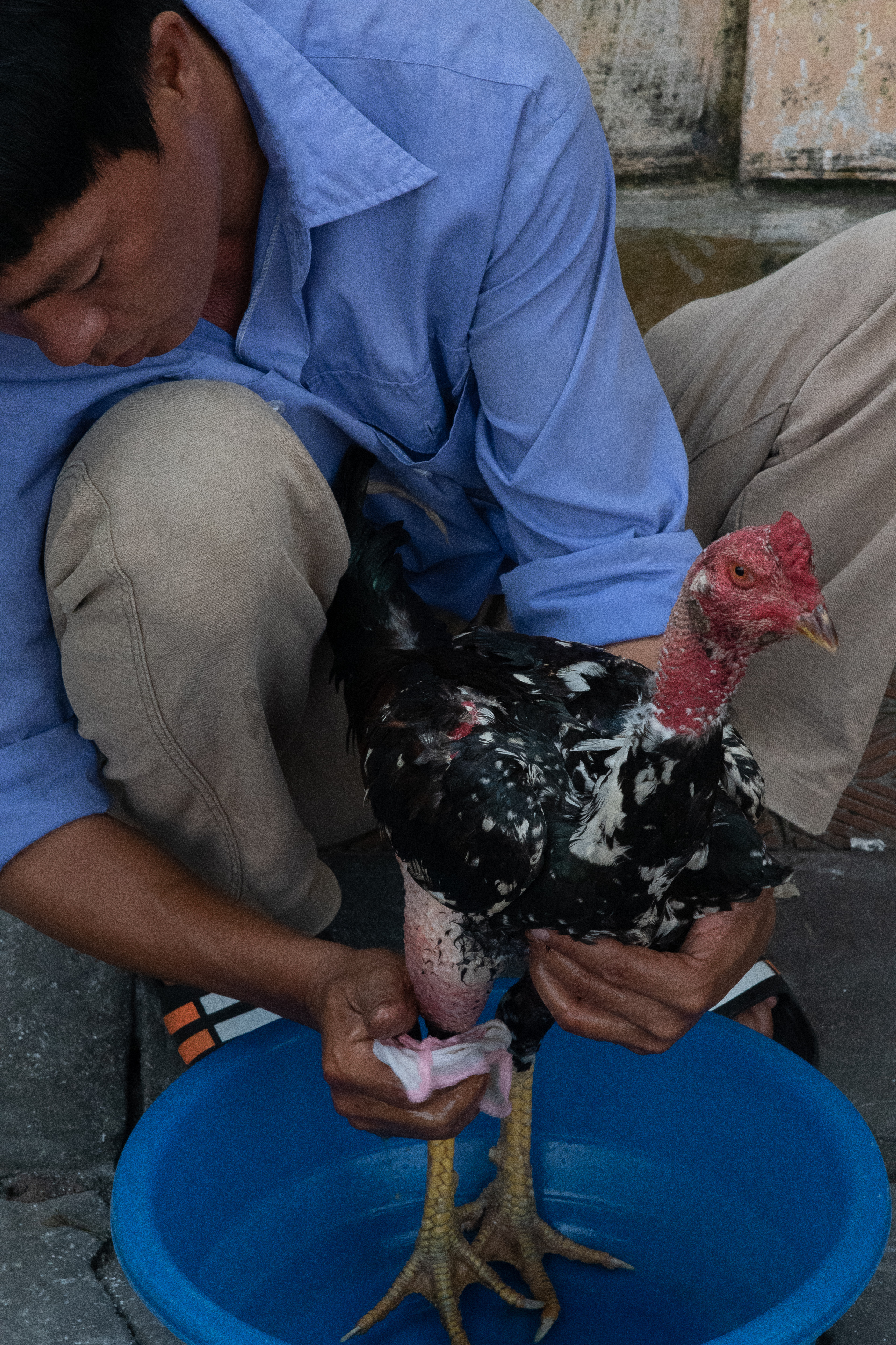 The Vietnamese take great care with their fighting cocks, carefully bathing and grooming them. We did not attend a cock fight, which is legal in Vietnam.