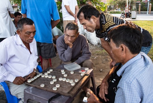 In the park adjacent to the beach, men were playing vxiangqi, a Vietnamese and Chinese board game similar to chess.