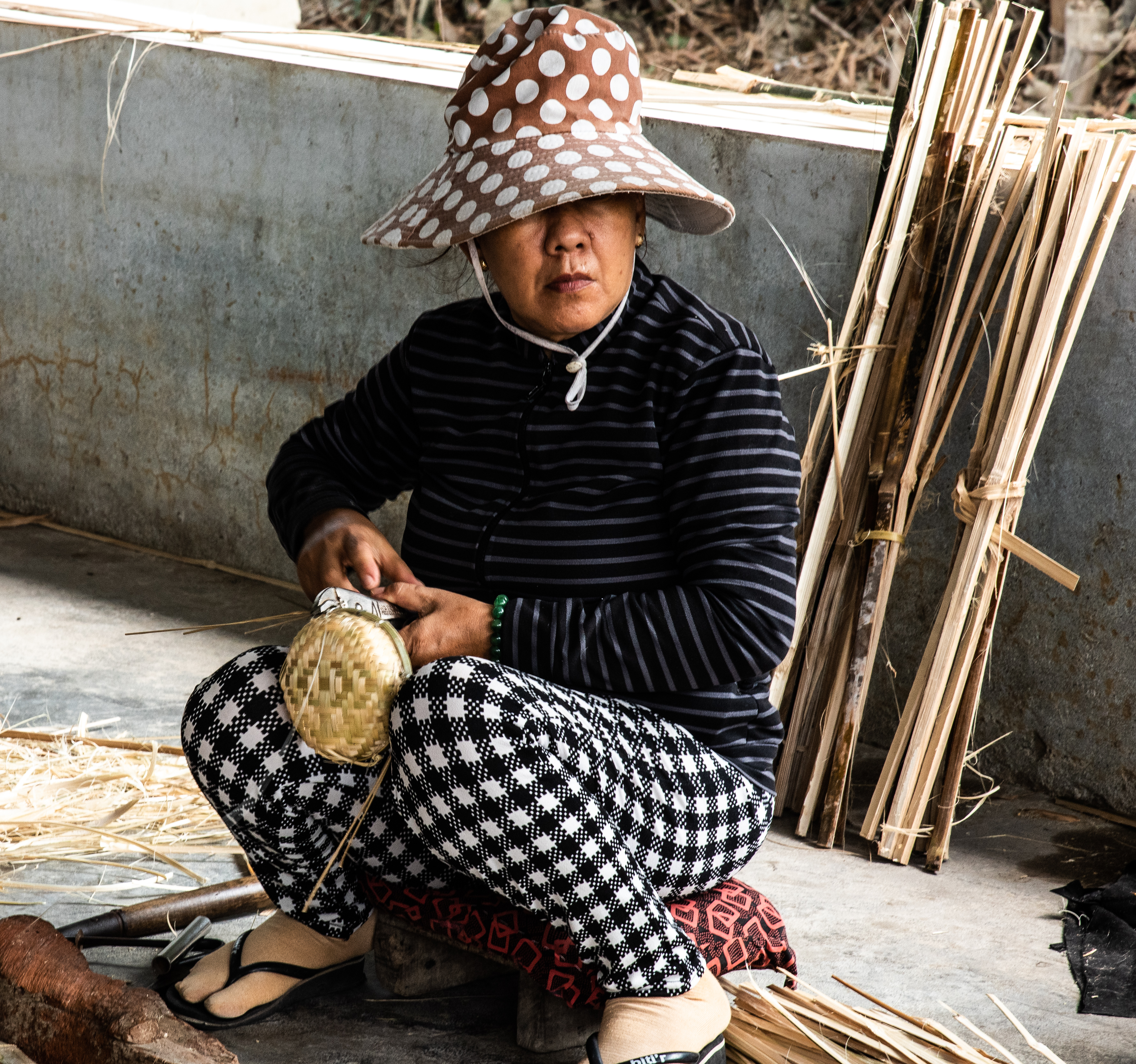 The chief took us around and introduced us to some of the villagers who make their living weaving baskets and carving chop sticks.