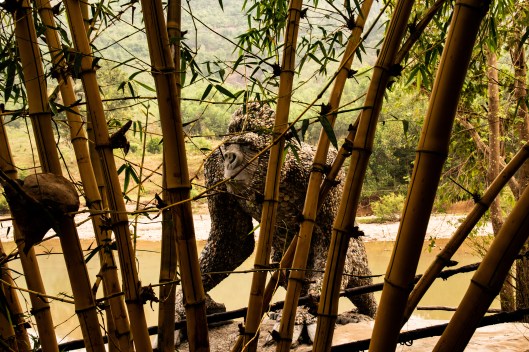 We left Nha Trang and headed for Dalat in the Central (Lang Biang) Highlands. We made a pit stop at an enclave that included a restaurant overlooking a bamboo forest and a stream with large animal sculptures made of imbedded river rocks. Animism is a strong element in local religious beliefs.