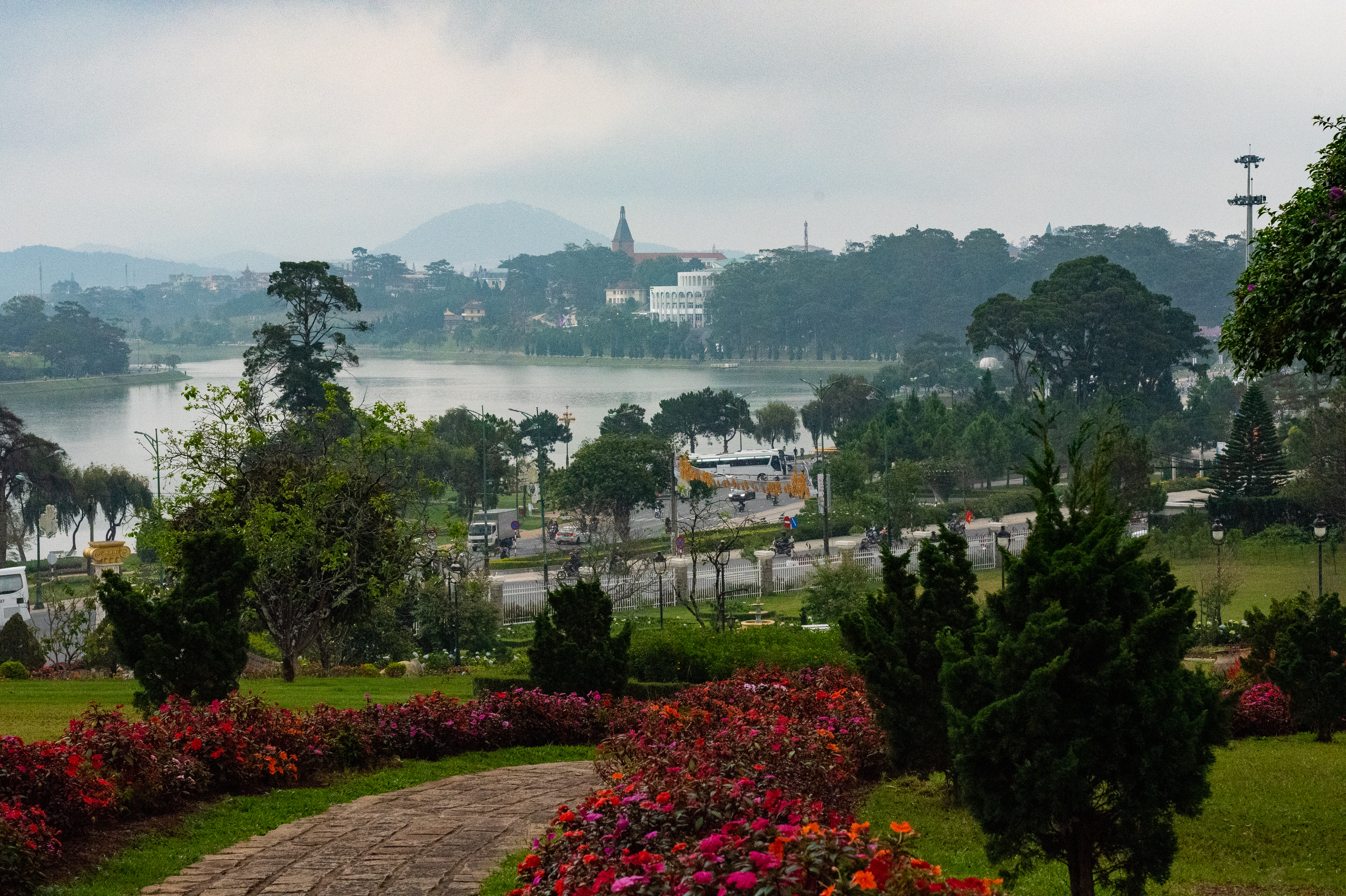 The City of Dalat, which is 5000 feet above sea level, surrounds the man-made Xuan Huong Lake. It is known as the “Land of Perpetual Spring” for its year round temperate weather and is highly touted on the internet as the ideal place for ex-pats. In fact, we did have lunch at a restaurant owned by an American.