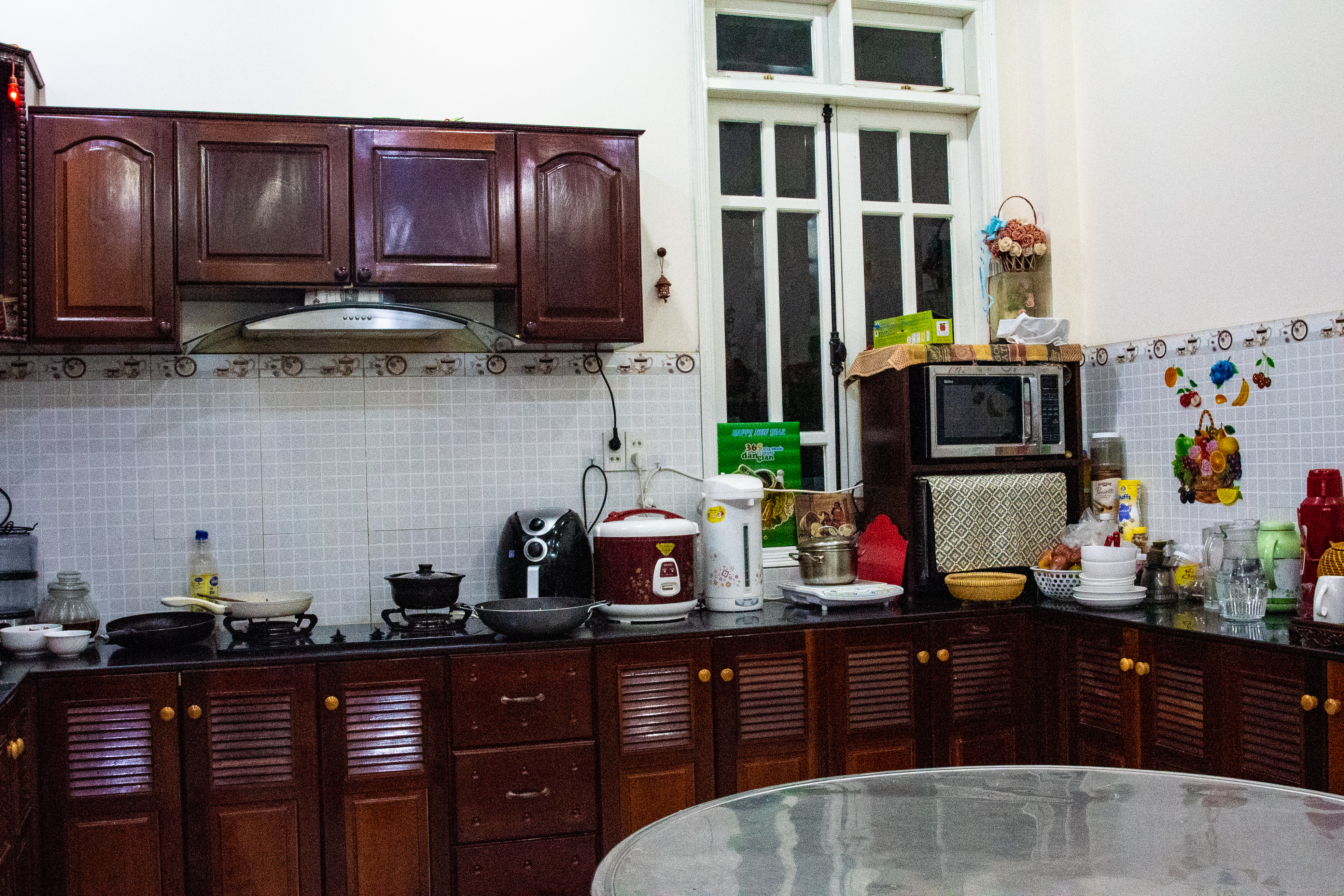 The kitchen has all the modern appliances one might find in the US.